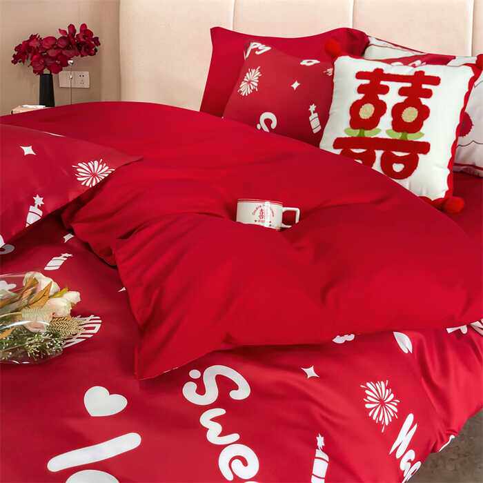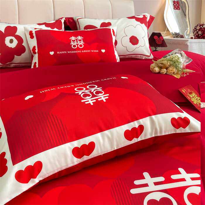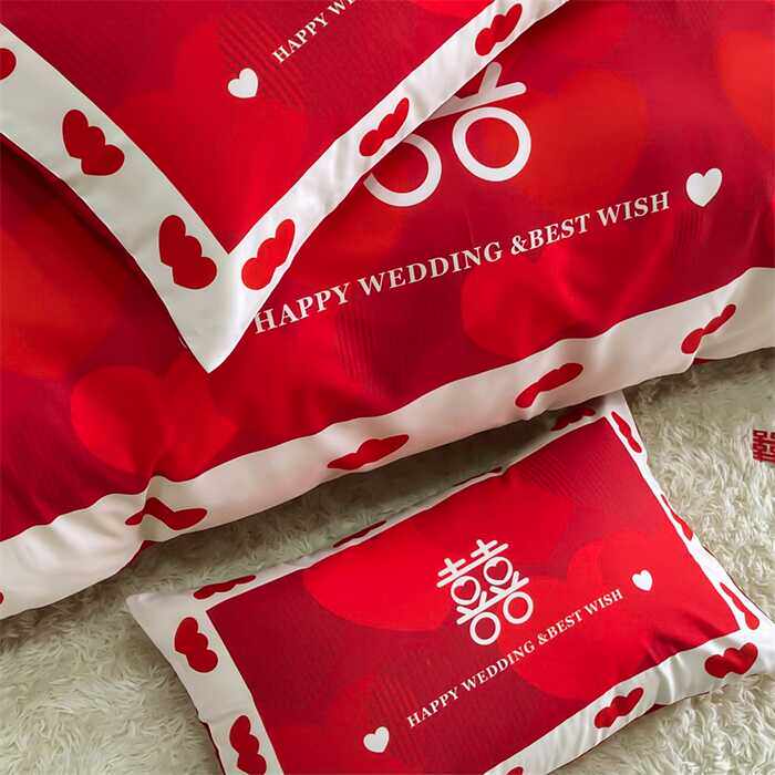 高档婚礼新婚床单四件套结婚红色喜字印花被套婚庆六件套床上用品