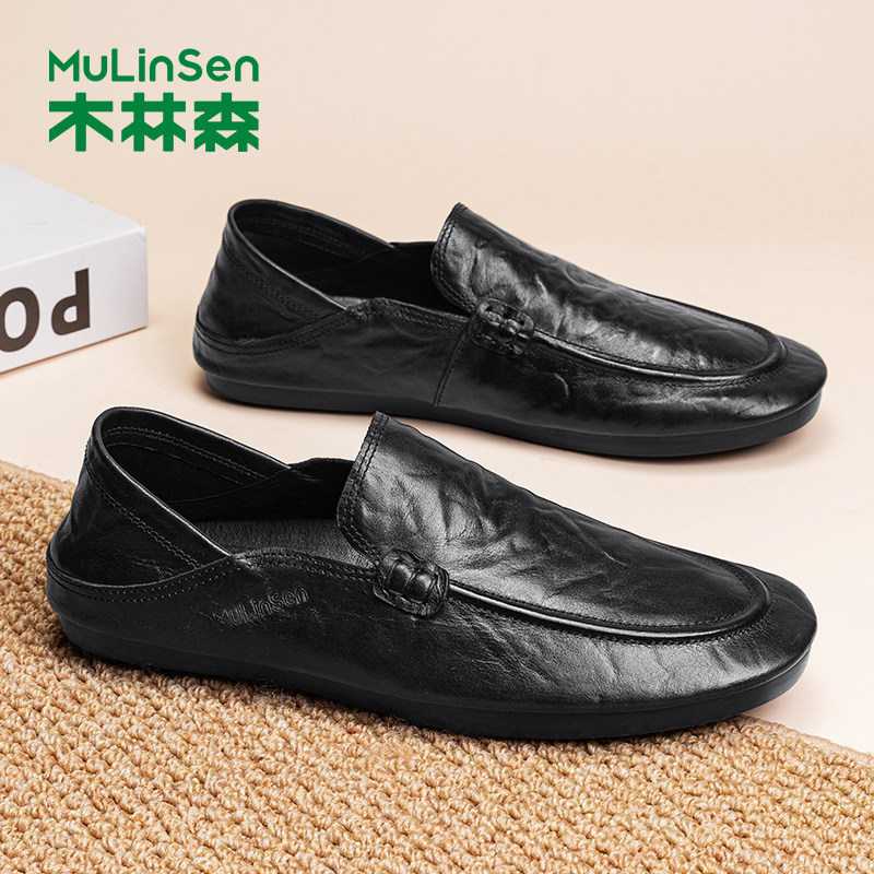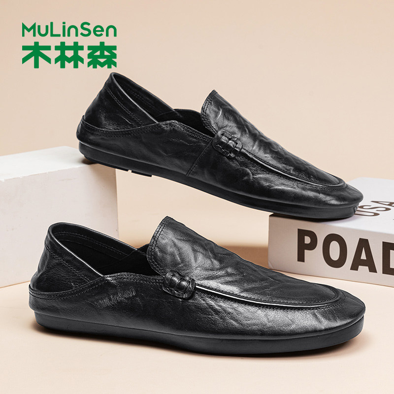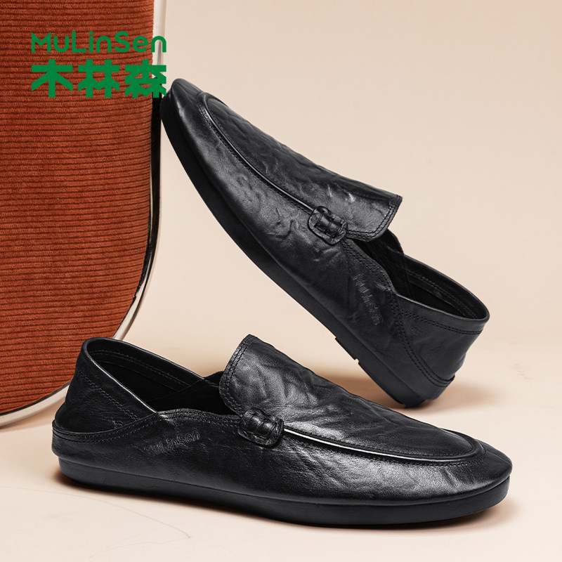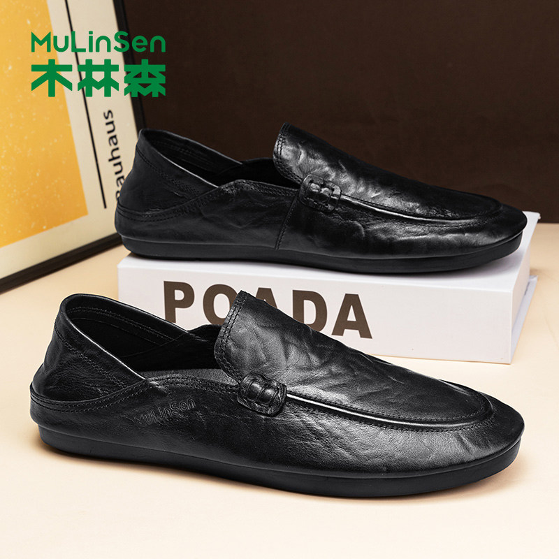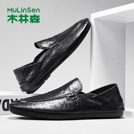 木林森时尚皮鞋男鞋秋季新款商务豆豆鞋开车男士休闲皮鞋乐福鞋