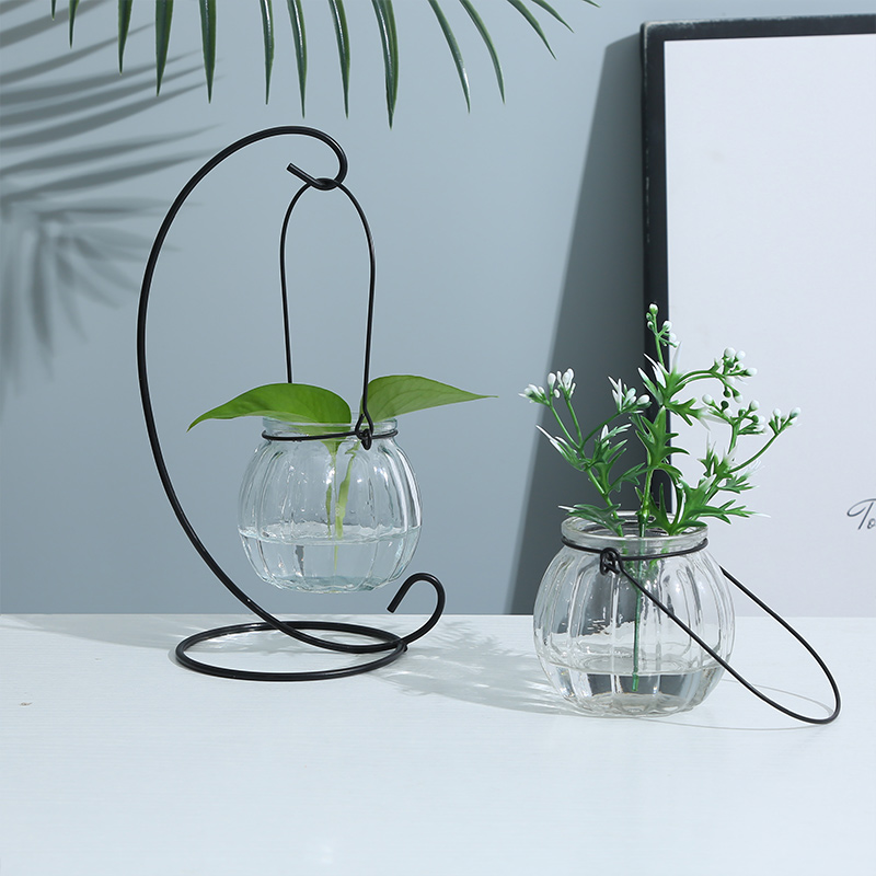 创意铁架水培绿萝玻璃花瓶容器盆办公室内桌面绿植现代摆件装饰品