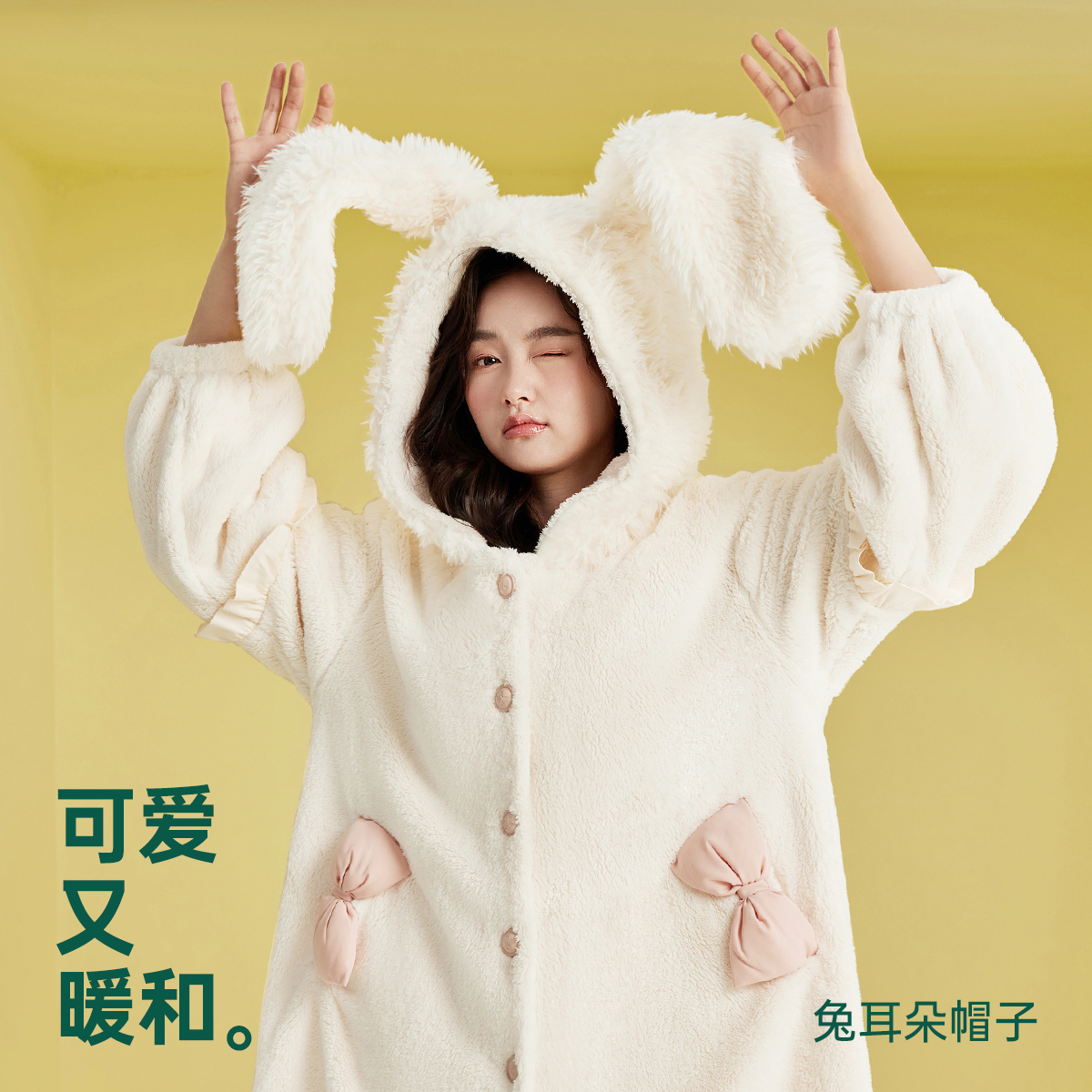 安之伴【巨保暖】连帽珊瑚绒睡衣女秋冬款甜美可爱宽松家居服套装