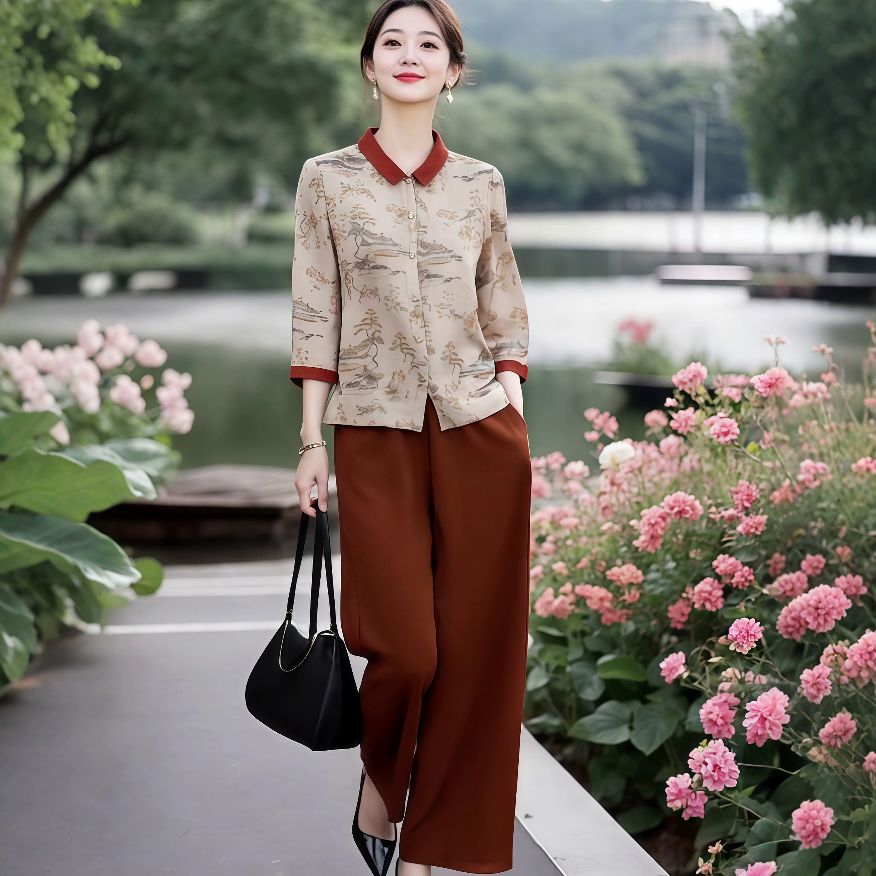 素韵订制女装原创品牌高级感撞色翻领上衣女两件套阔腿裤套装秋季