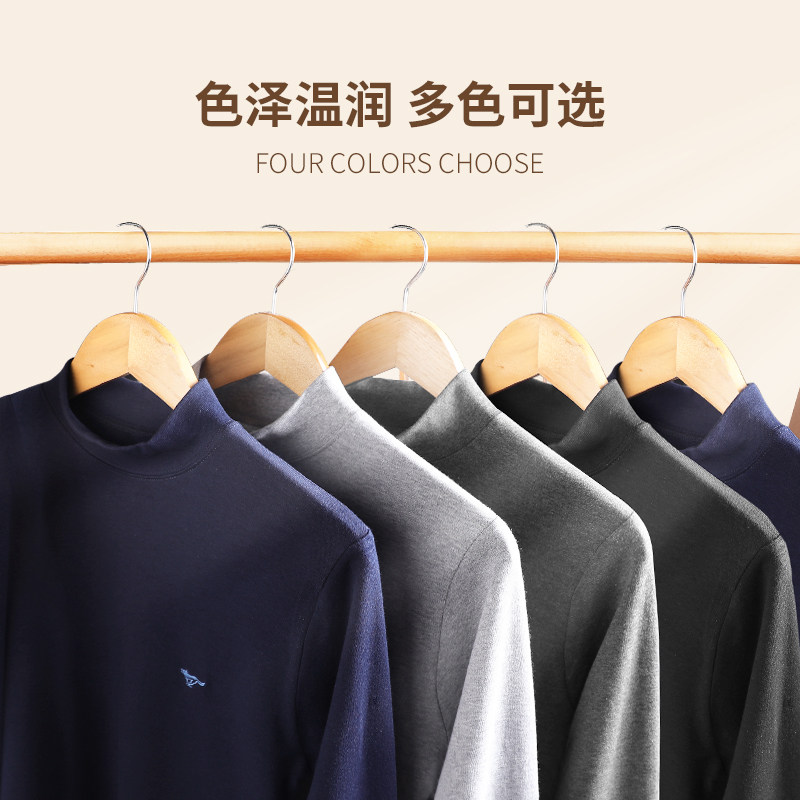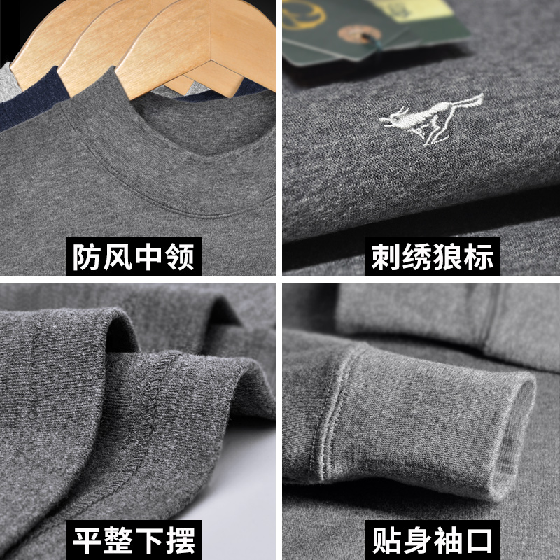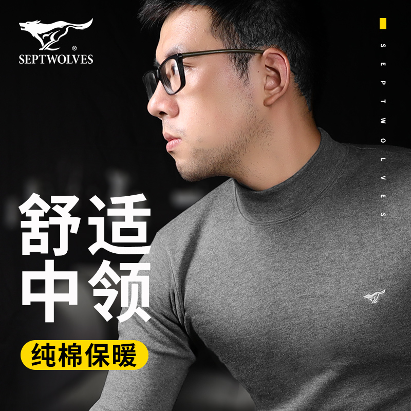 七匹狼保暖内衣男士上衣单件纯棉毛衫上身半高领秋衣裤套装中老年