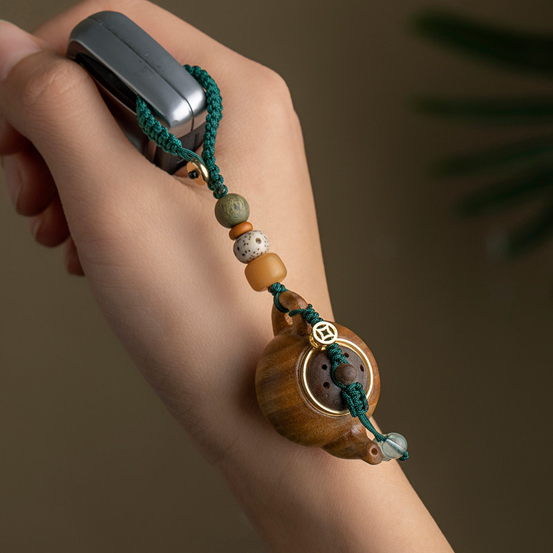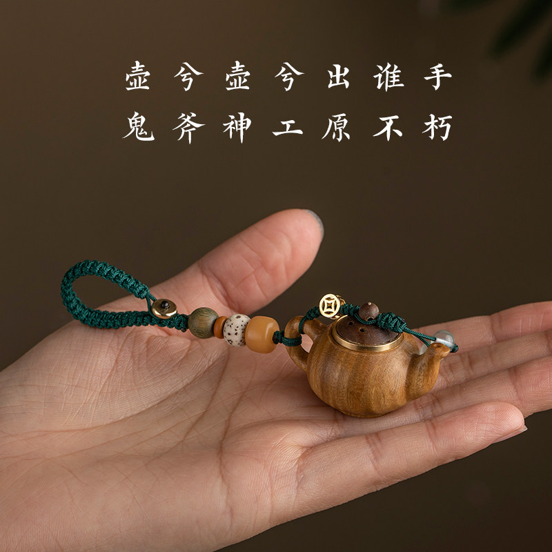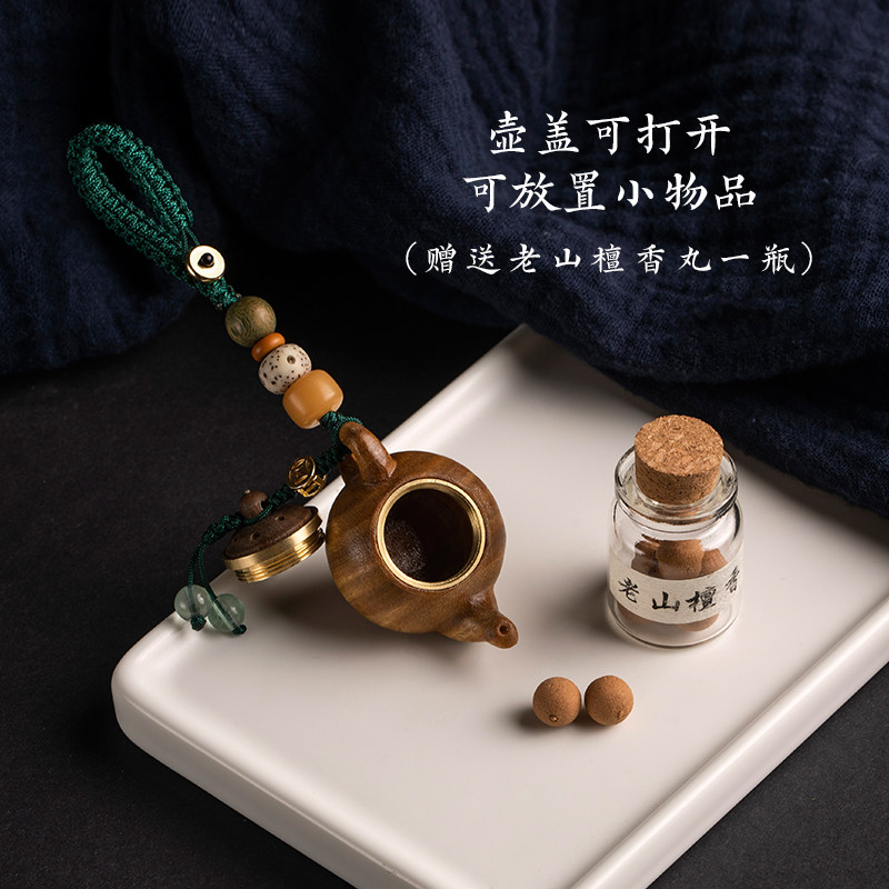思怀绿檀木把把壶钥匙扣打麻将手把件内置香丸汽车钥匙挂件茶壶