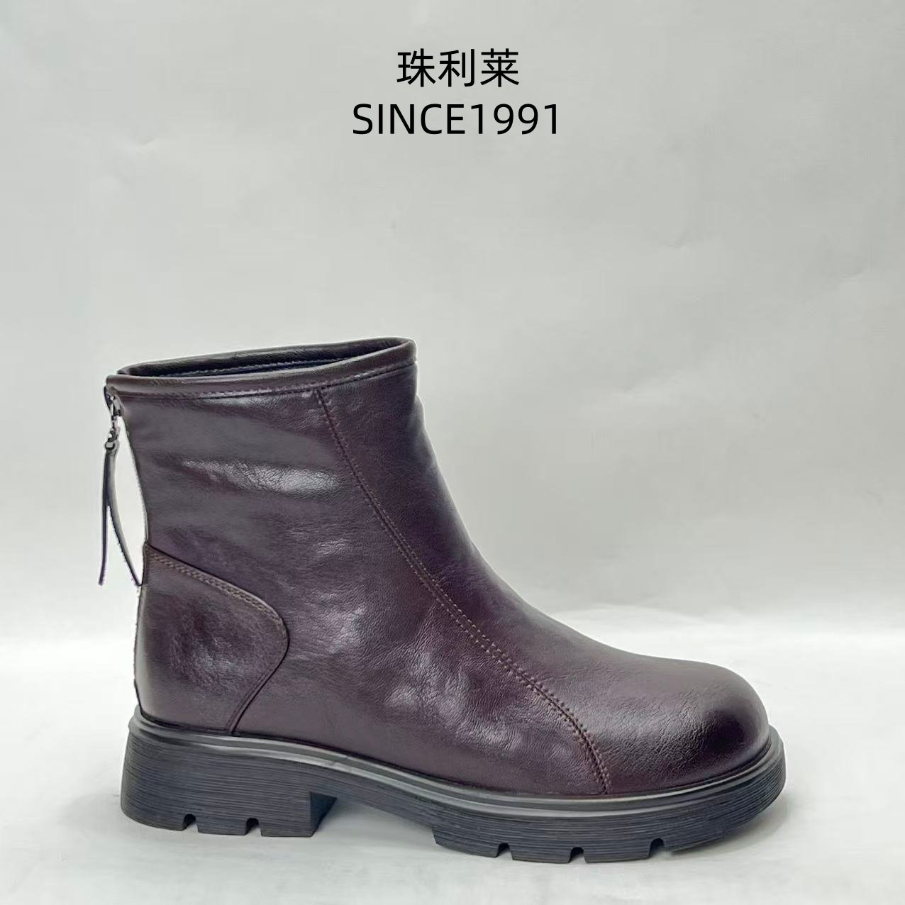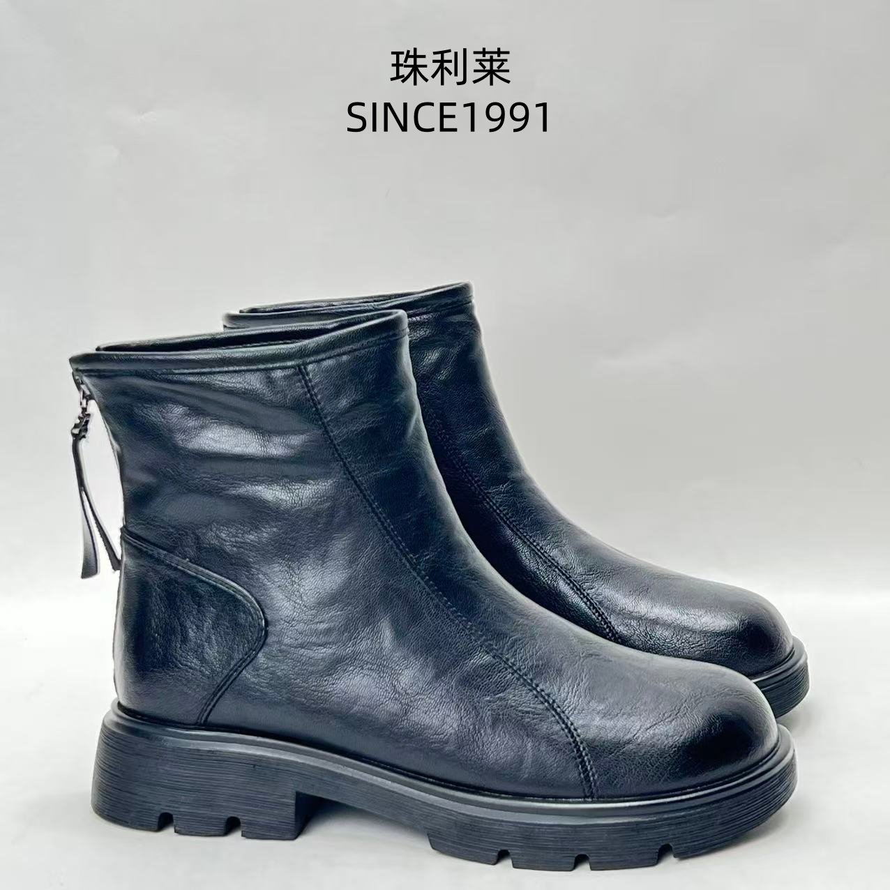珠利莱2025秋冬季新款复古圆头靴
