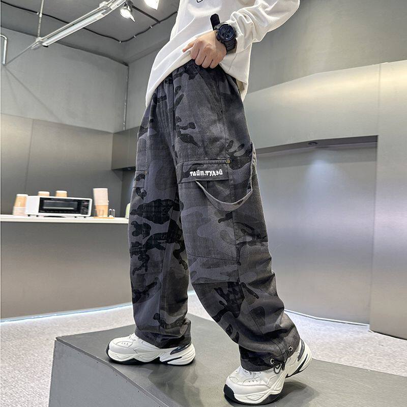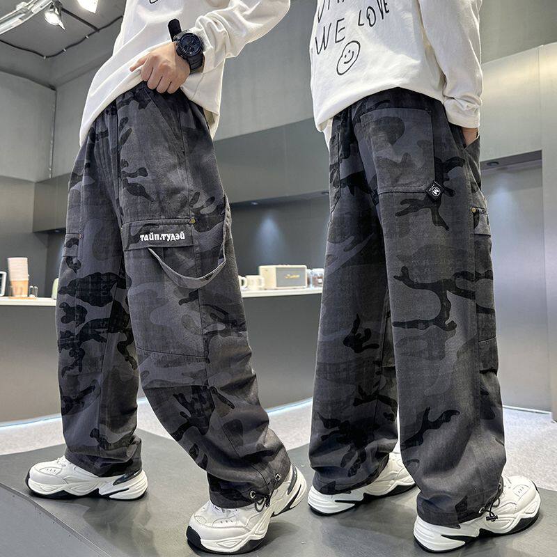 男童工装裤2025新款中大儿童秋冬宽松迷彩阔腿裤男孩帅束脚裤加绒