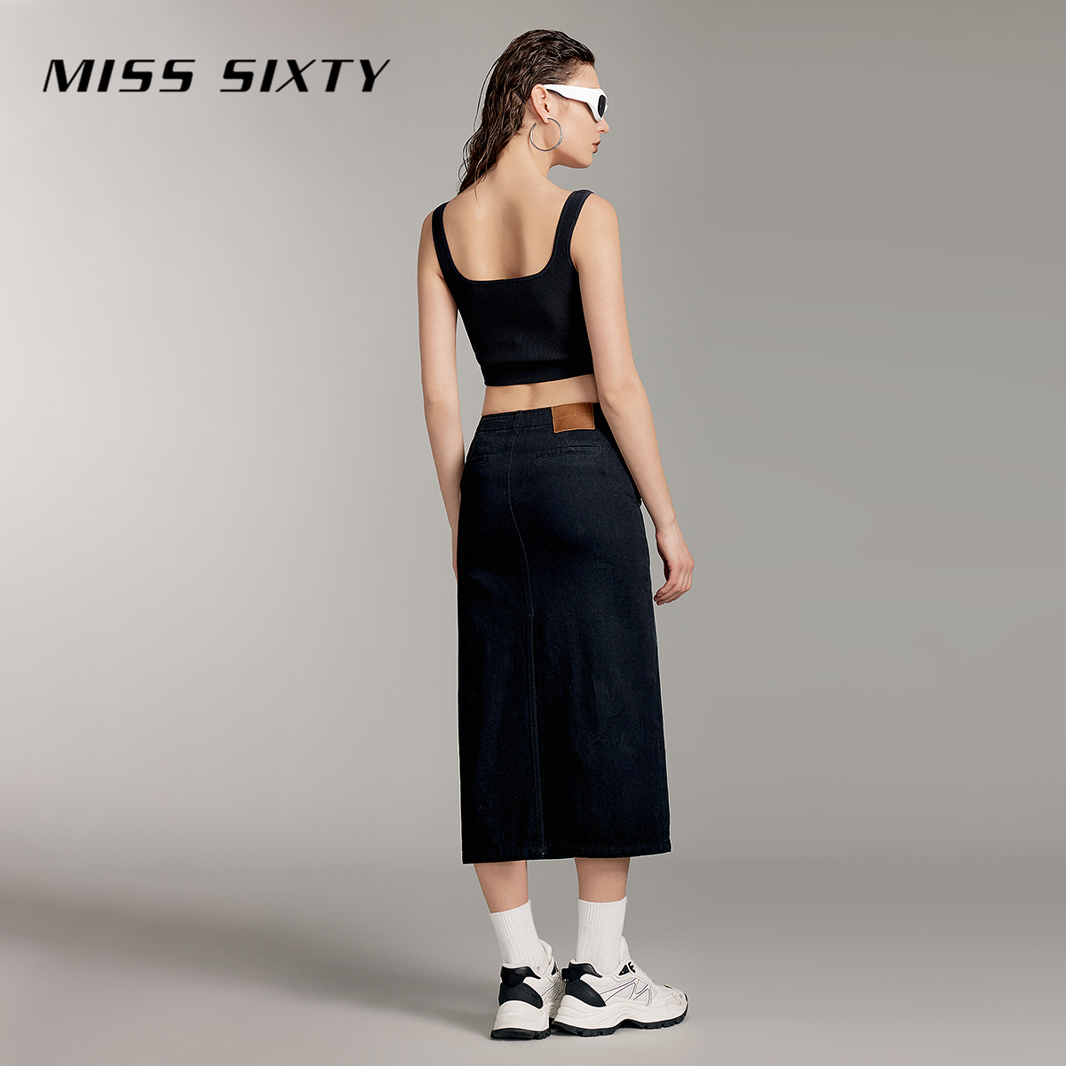 Miss Sixty针织背心女方领无袖短款拉链复古性感辣妹时尚外穿