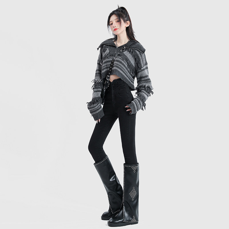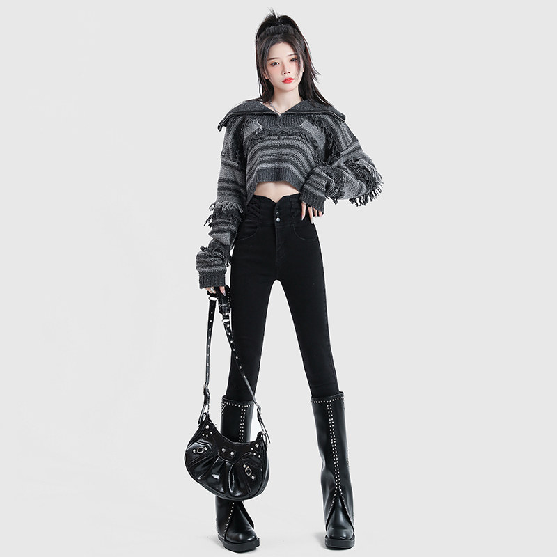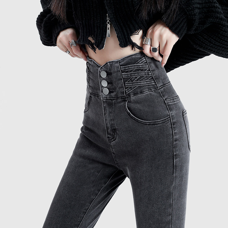 RJVO高腰牛仔裤女春季新款显高显瘦紧身ins潮流小脚铅笔裤