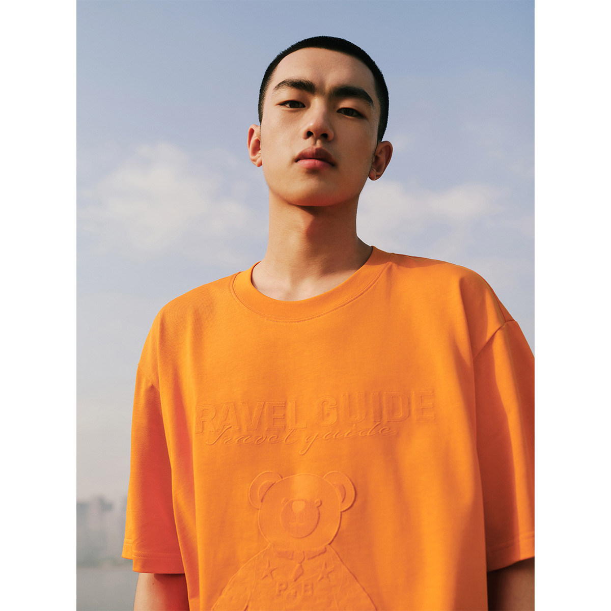 【断码钜惠】太平鸟男装 夏小熊立体提花短袖T恤B1DAD2130