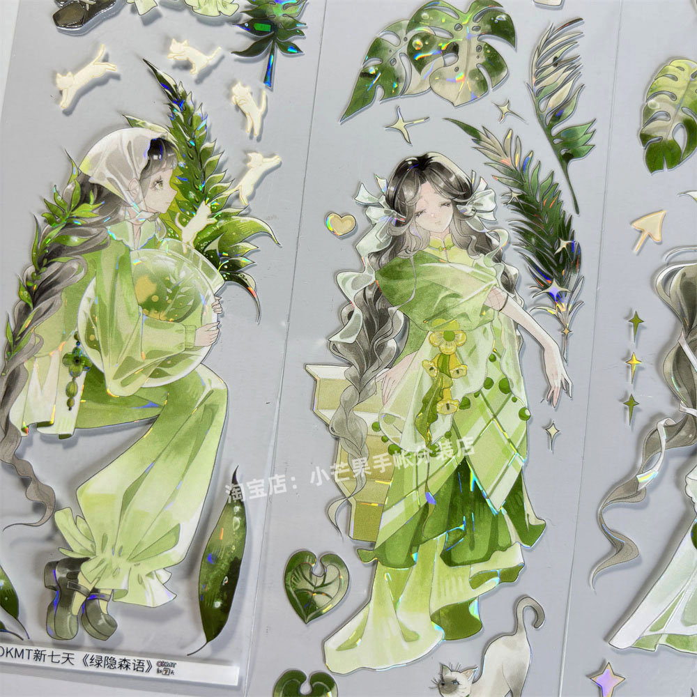 手帐分装胶带绿隐森语新七天少女清新古风PET素材账流麻贴纸咕卡
