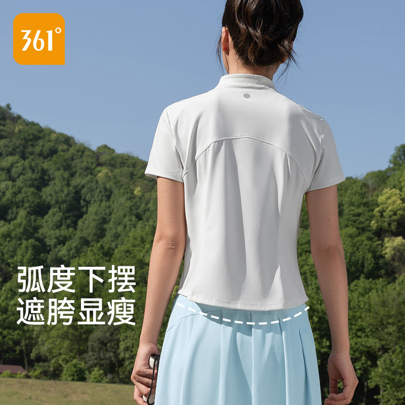 361运动上衣女半拉链短袖t恤夏季白色修身跑步羽毛球健身服瑜伽服