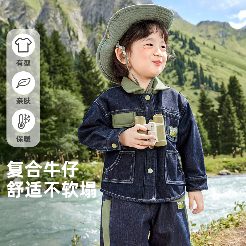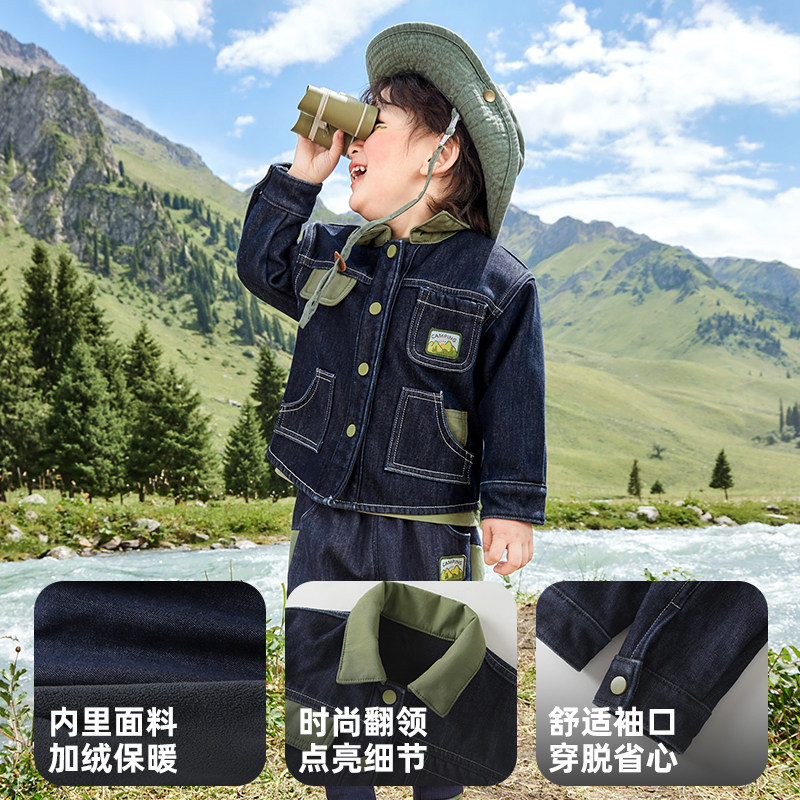 咔咔熊猫秋冬新品婴儿衣服奥粒绒牛仔外套秋冬款男女宝宝儿童上衣