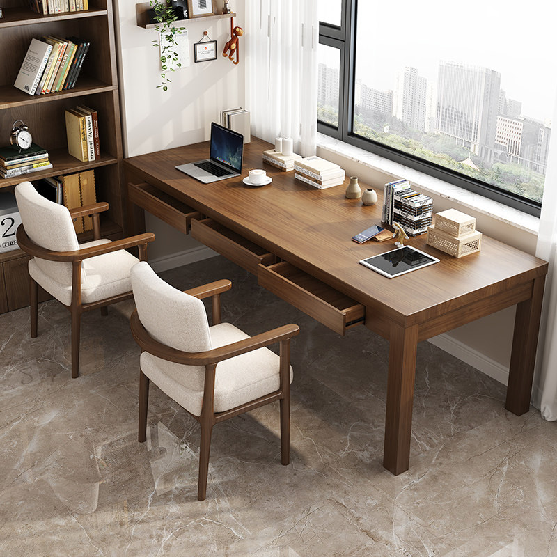 实木书桌带抽屉收纳家用电脑桌子