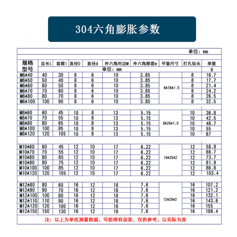 304不锈钢膨胀螺丝内膨胀螺栓外六角内置拉爆沉头十字爆炸平头钉