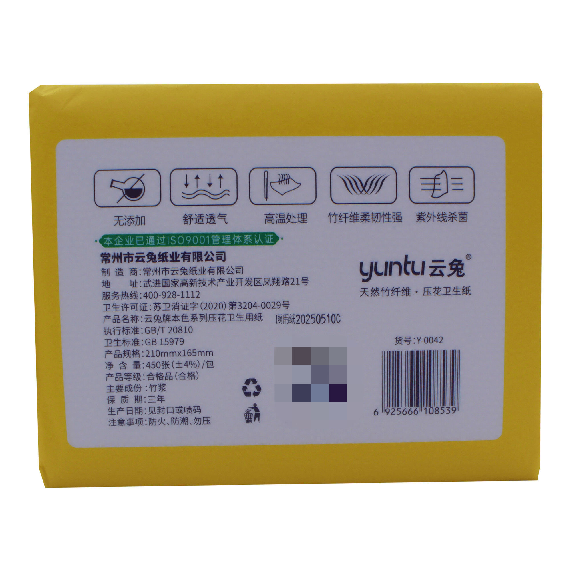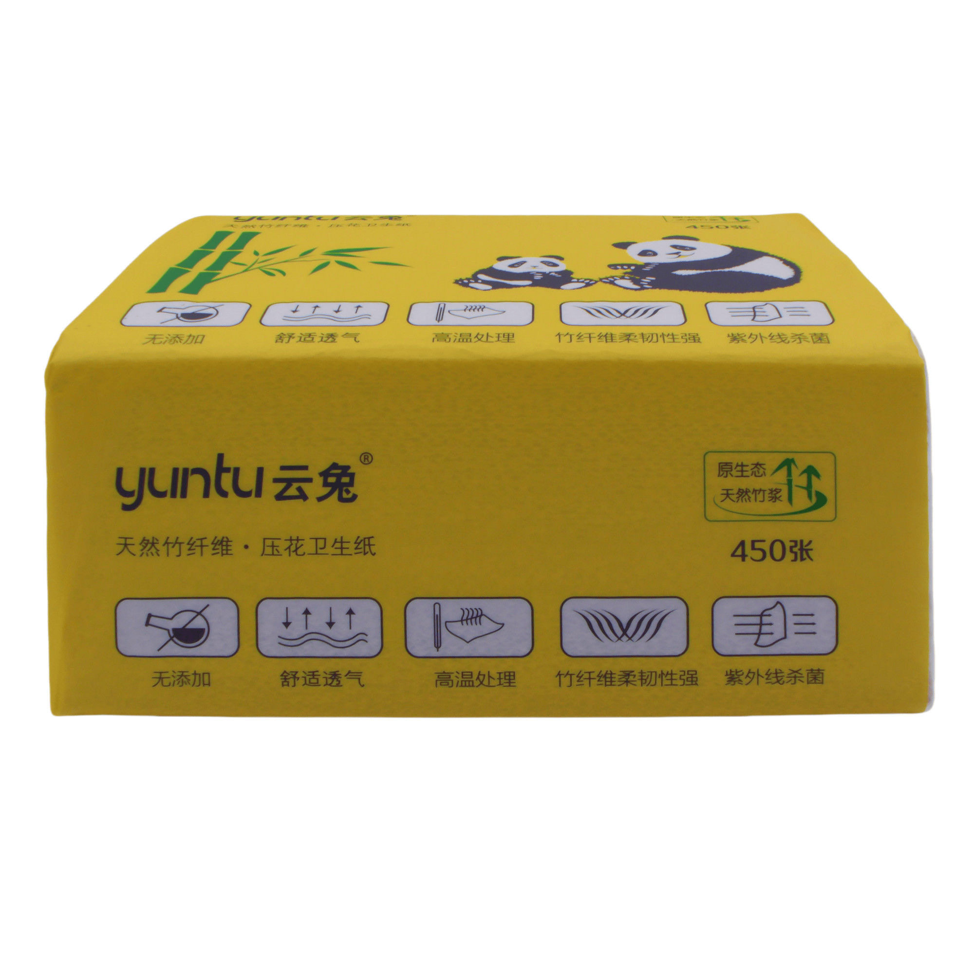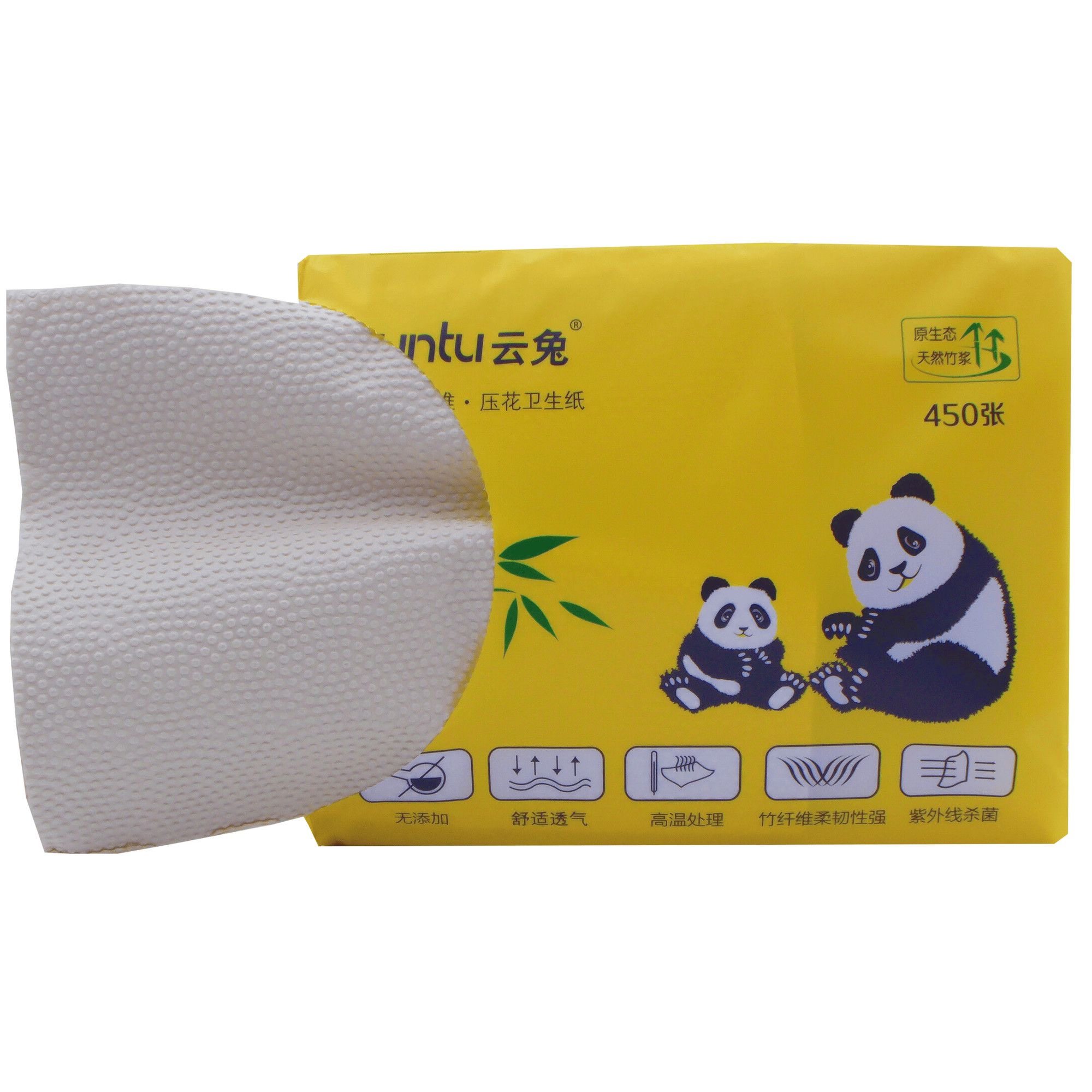 云兔450层竹纤维平板卫生纸压花厕纸纸巾手纸草纸加厚方块纸