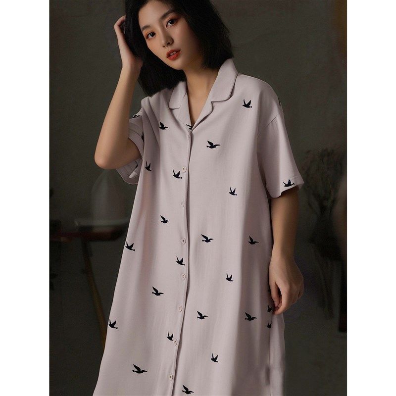 家居纯棉睡裙女士夏季短袖薄款大码可外穿休闲孕妇中款开衫高级感