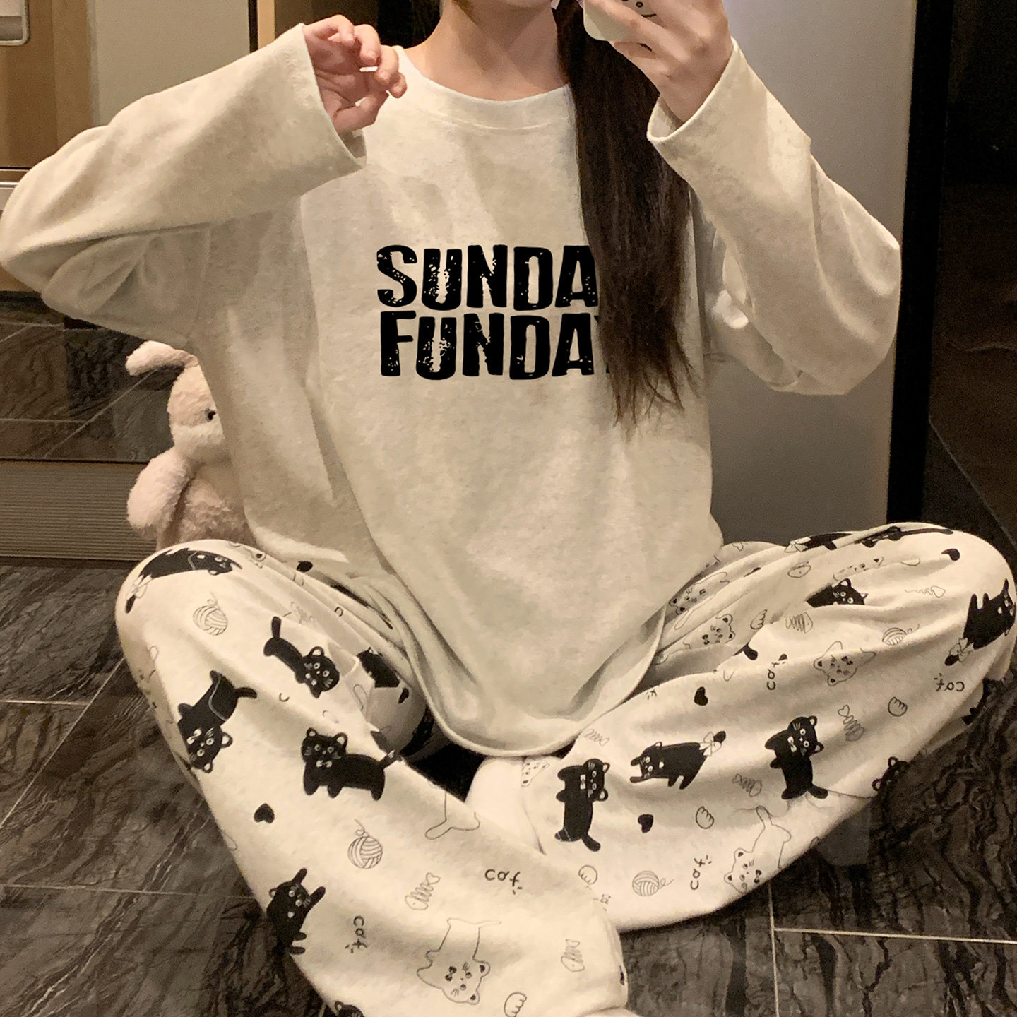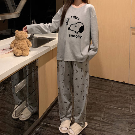 史努比睡衣女款春秋季长袖长裤纯棉学生家居服套装外穿春夏季薄款
