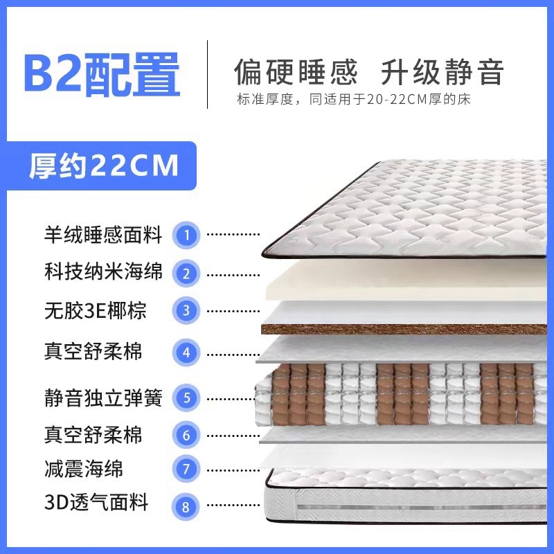 海马床垫席梦思十大名牌20cm厚软硬两用1.8米床乳胶椰棕弹簧床垫