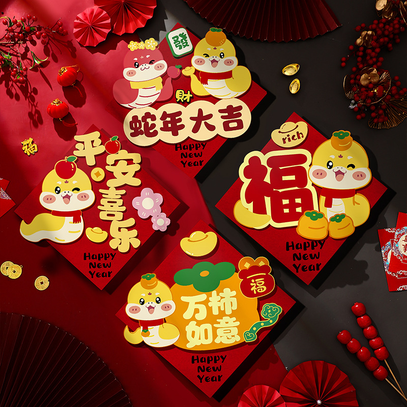 2025蛇年新款大门门贴装饰布置新年春节新年过年福字入户立体年货