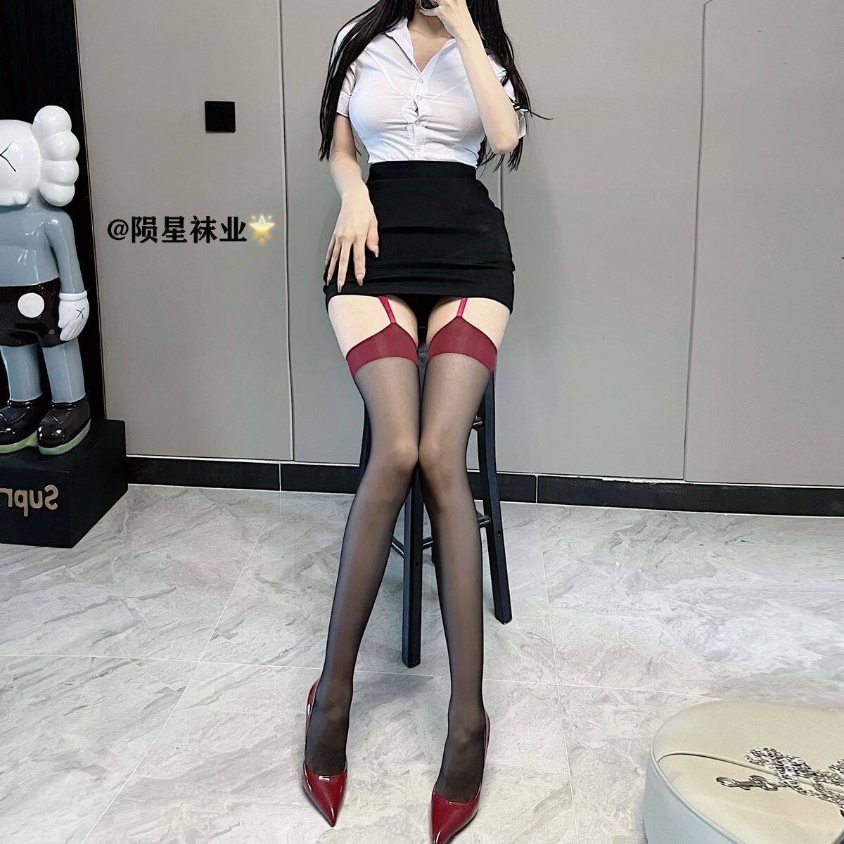 红色吊带一体丝袜性感蕾丝红色黑色过膝大腿袜连体筒袜子A12