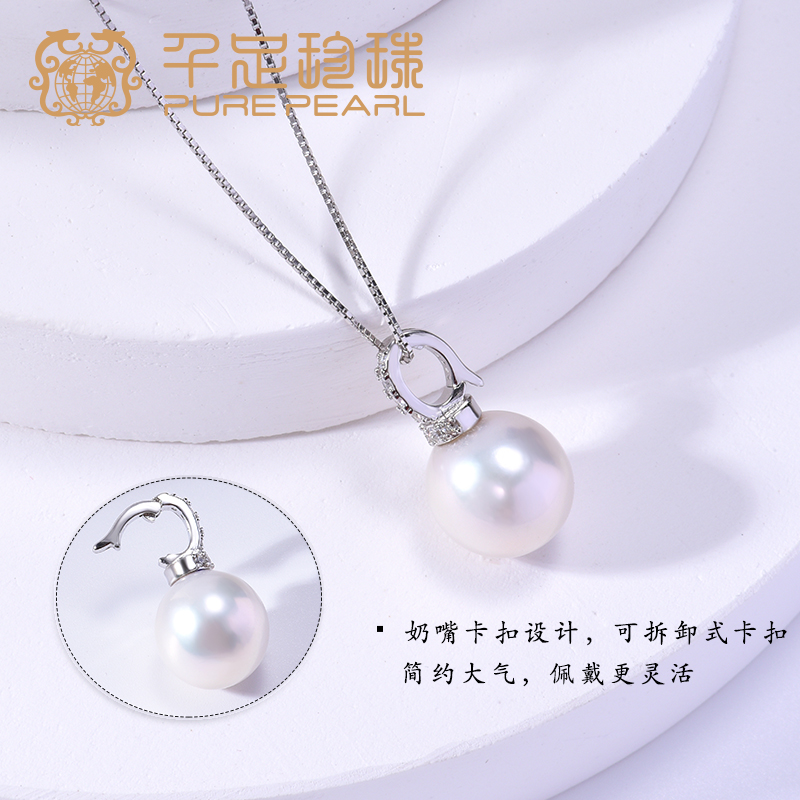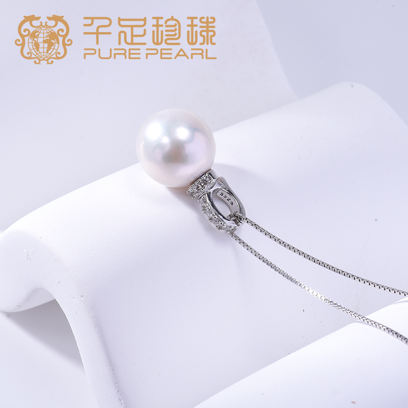 千足珍珠11-12mm淡水有核珠S925银吊坠女镶合成立方氧化锆项链