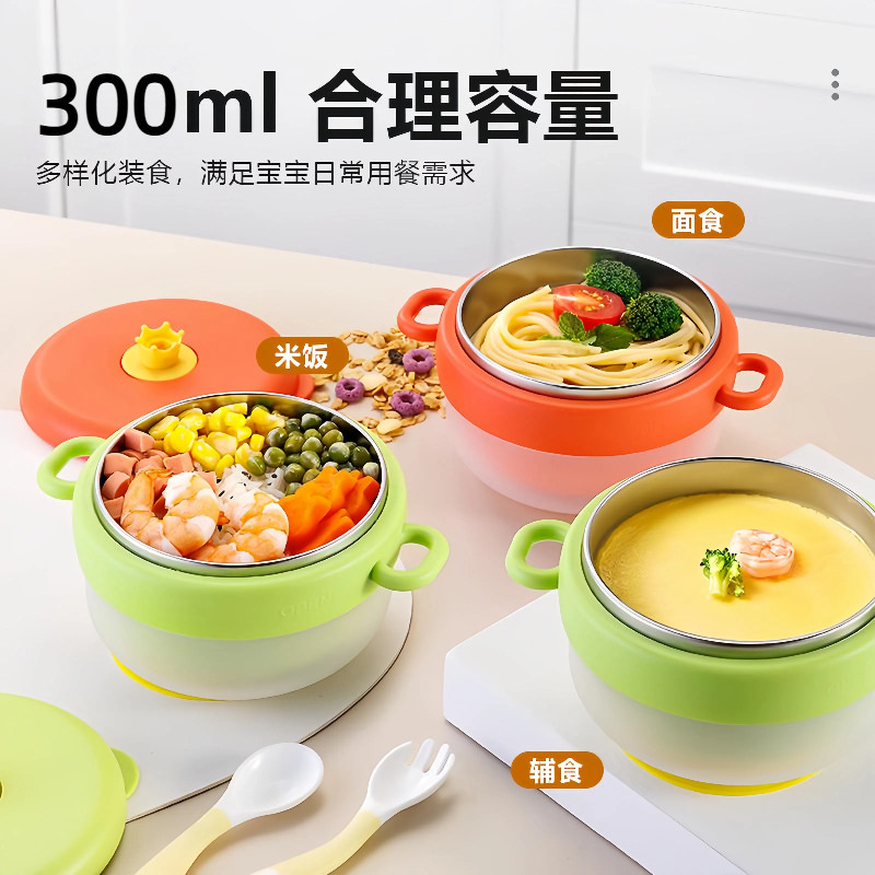 316不锈钢婴幼儿宝宝辅食碗儿童用幼吃饭餐具注水恒温带盖保温碗