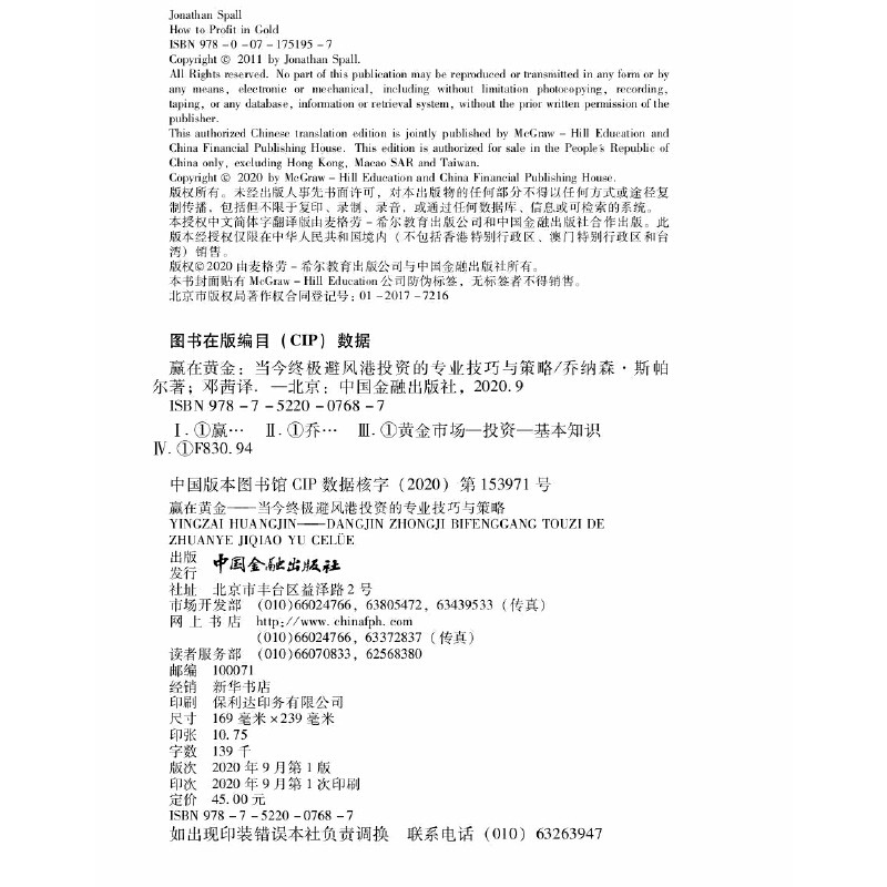当当网 赢在黄金:当今避风港投资的专业技巧与策略 乔纳森·斯帕尔 中国金融出版社 正版书籍