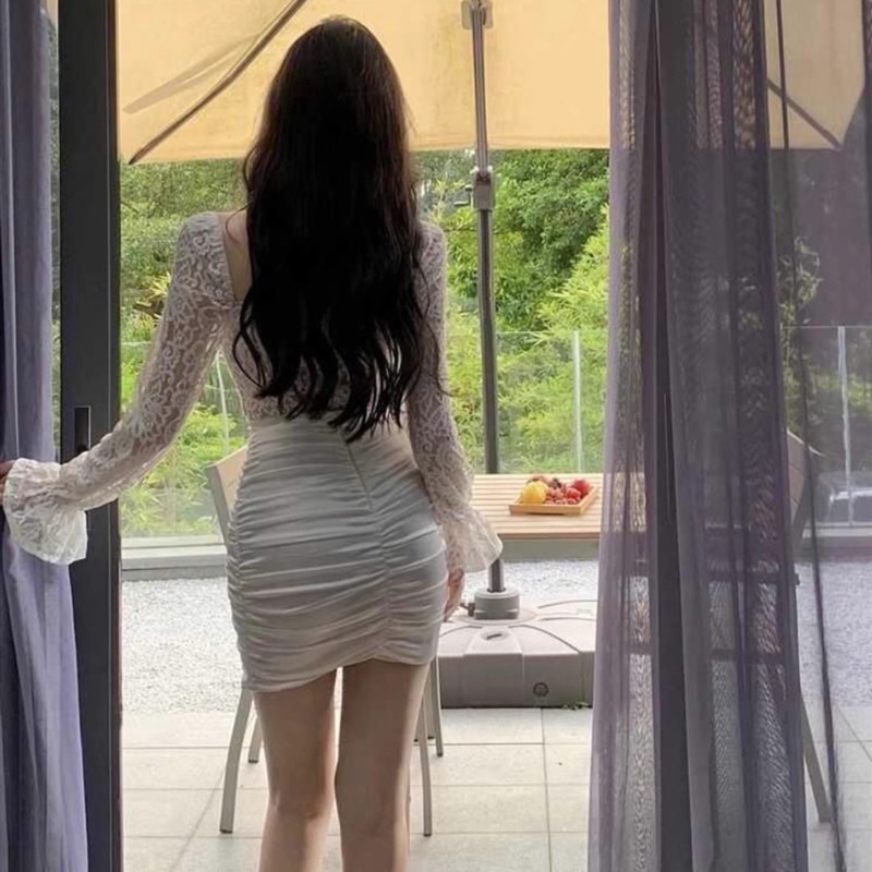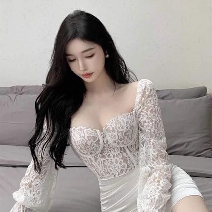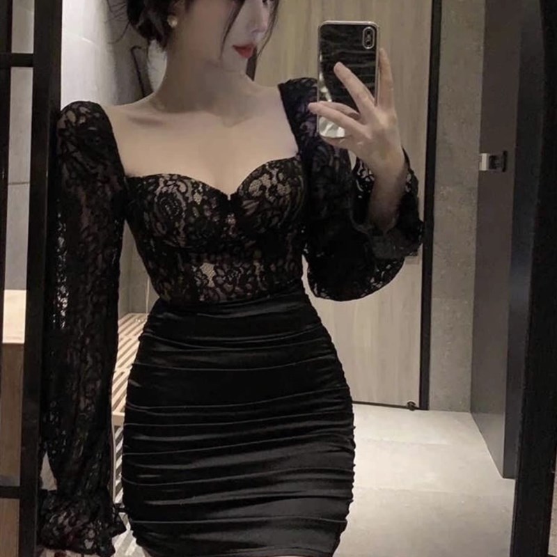 名媛蕾丝大码连衣裙女300斤胖mm法式打底性感包臀裙长袖紧身短裙