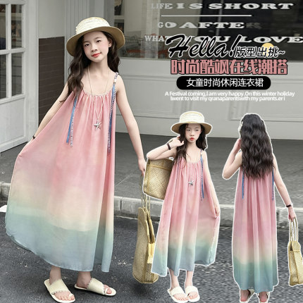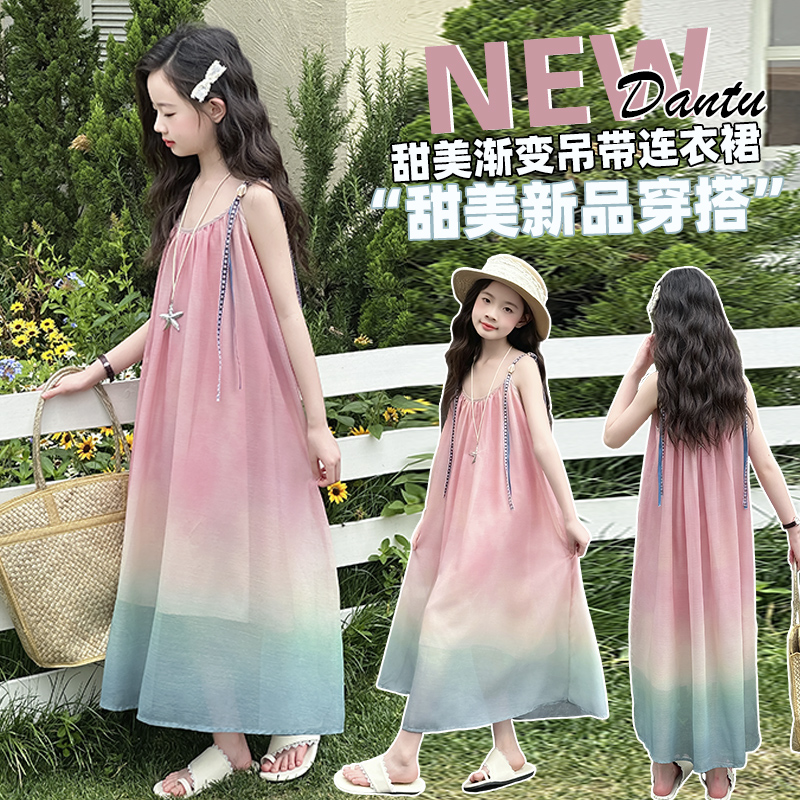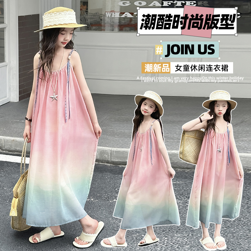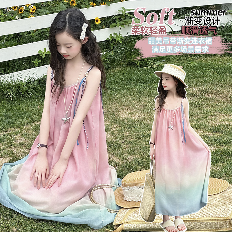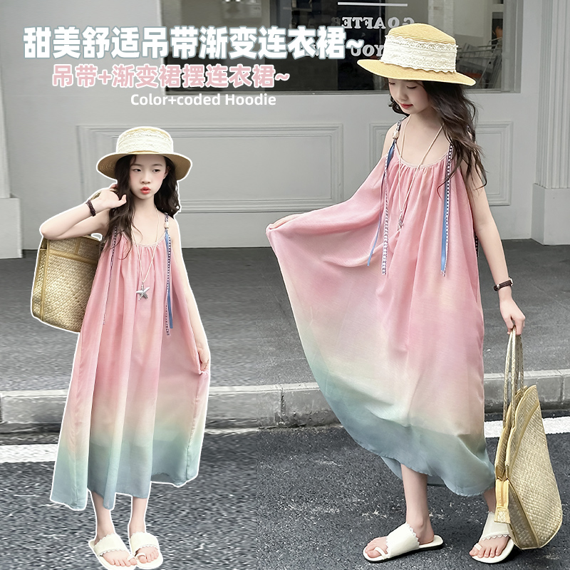 女童吊带连衣裙夏季新款公主裙中大童裙子童装女孩渐变长裙沙滩裙