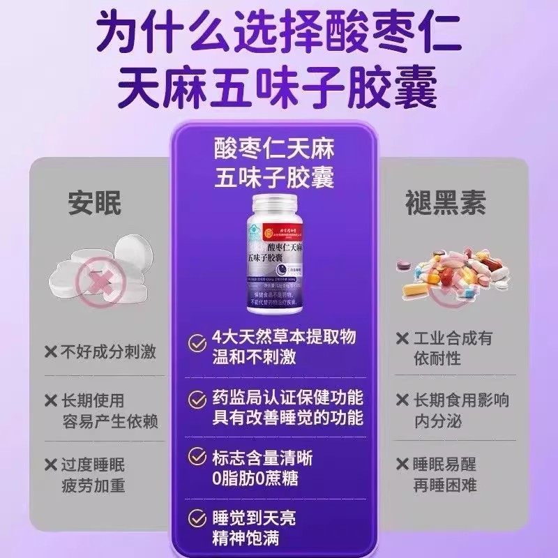 酸枣仁天麻五味子胶囊男女改善睡眠安神官方旗舰店安眠蓝帽认证