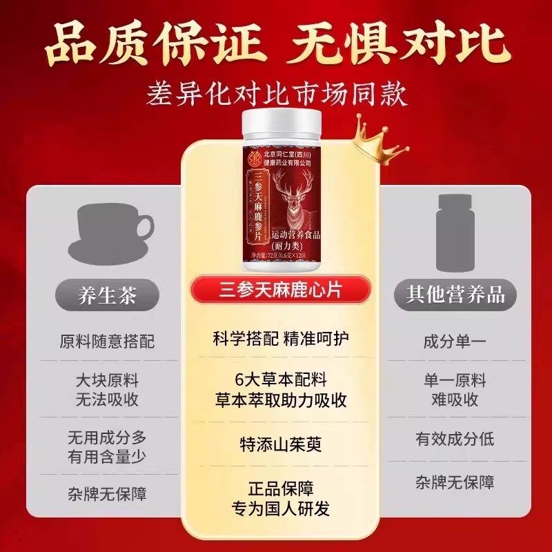 北京同仁堂三参天麻鹿心片官方正品杜仲叶鹿参草本朕皇4ek