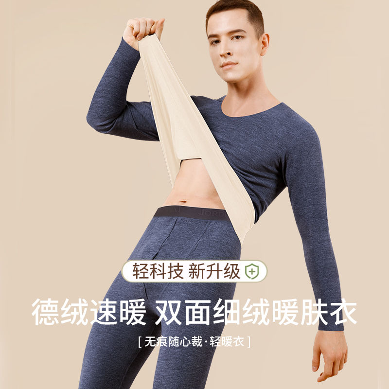 男士保暖内衣套装双面磨绒美肤绒德发热中厚加绒秋衣秋裤冬季