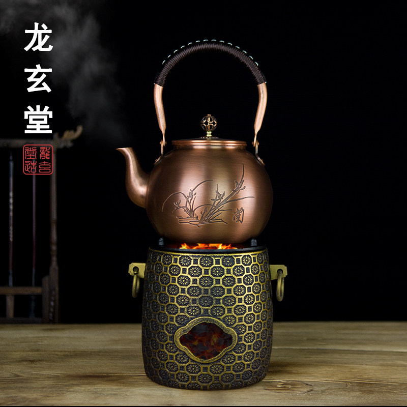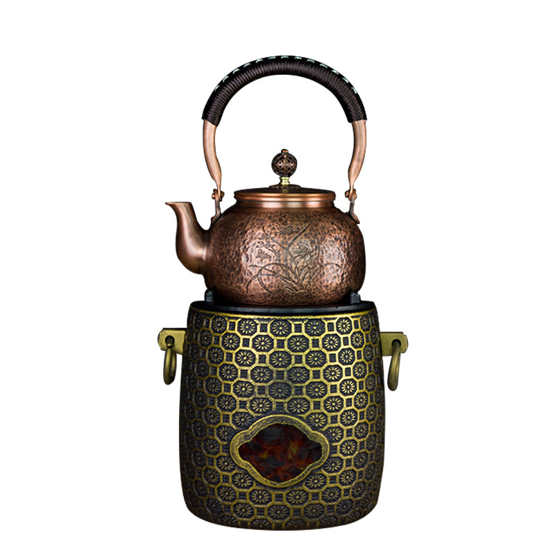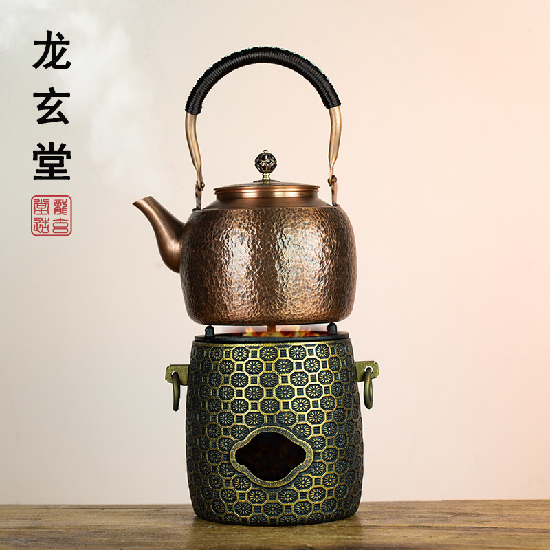 铜壶炭炉煮茶烧水壶手工纯紫铜水壶户外露营便携茶具碳火炉煮茶壶