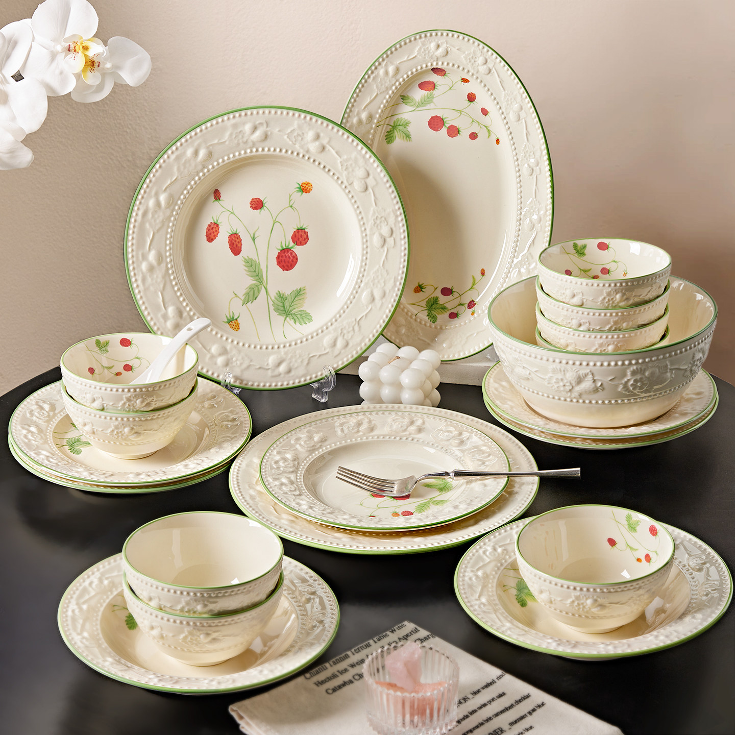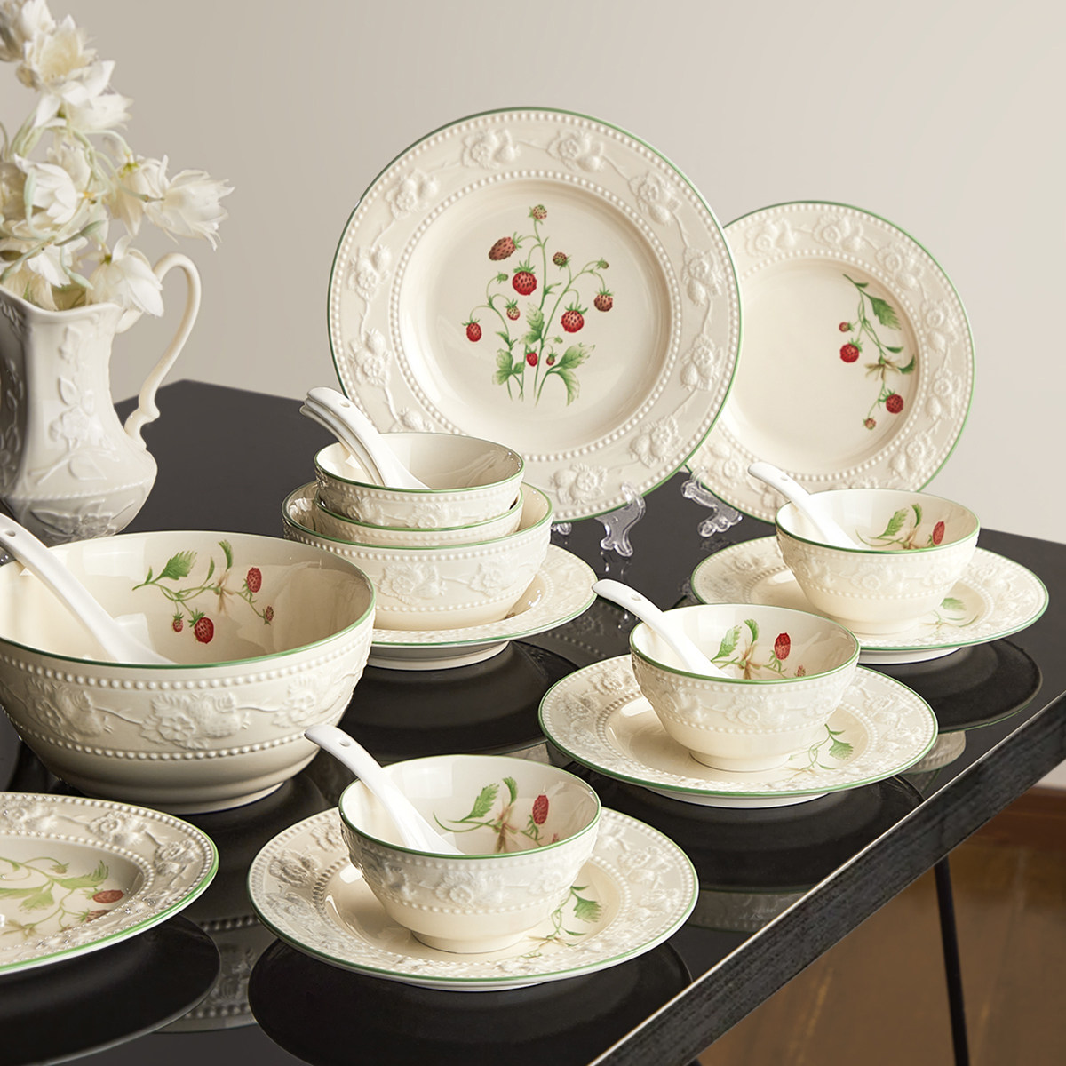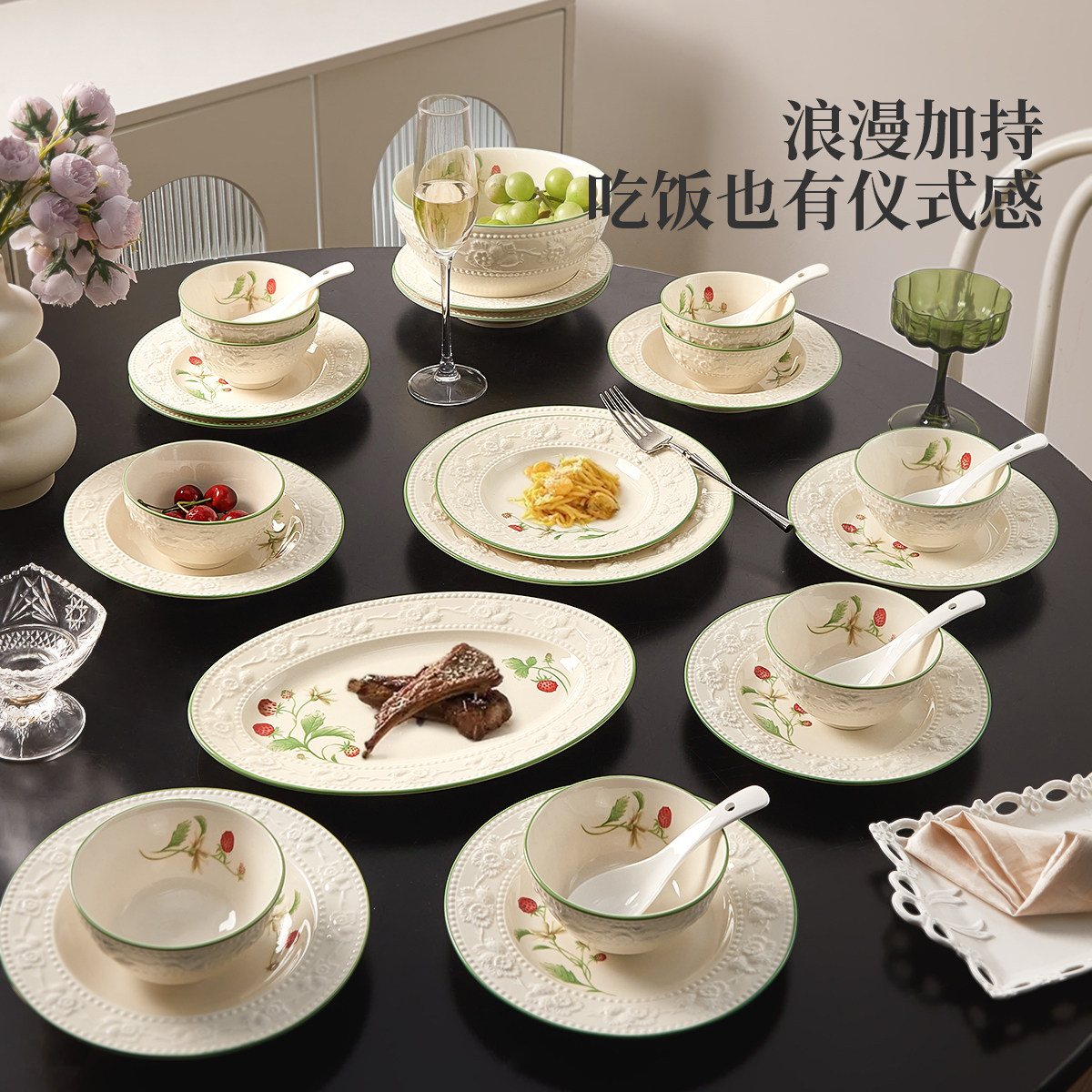 浮雕法式餐具套装碗碟家用2025新款高级感碗盘子碗具乔迁新婚礼物