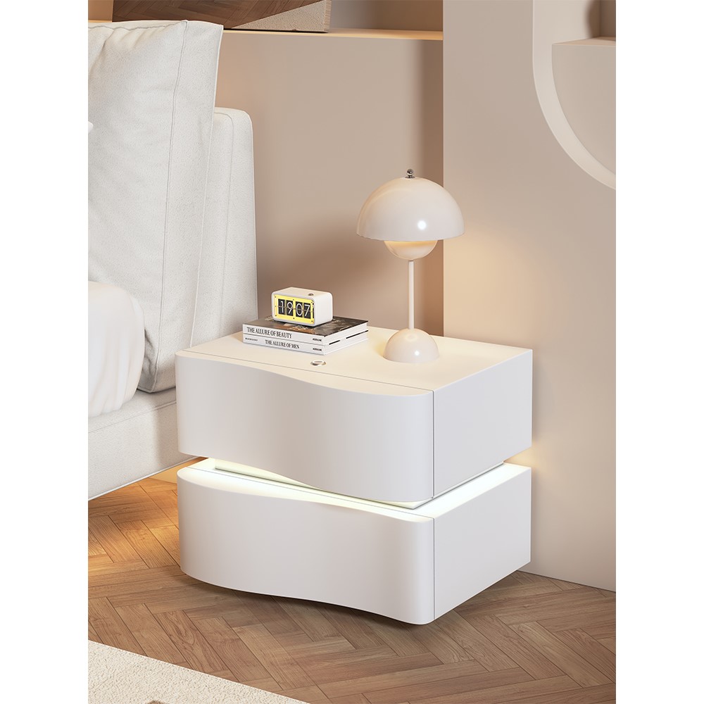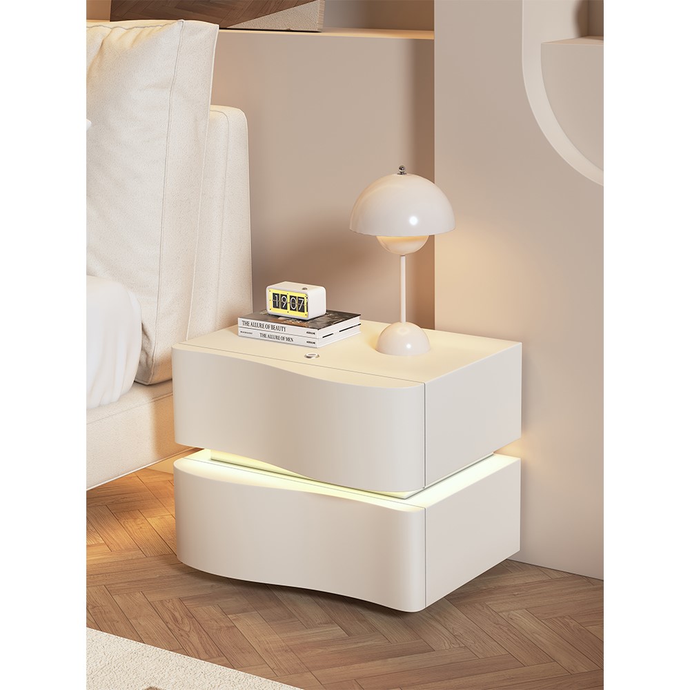 喜临门奶油风床头柜2025新款简约现代卧室家用轻奢高级感实木床边