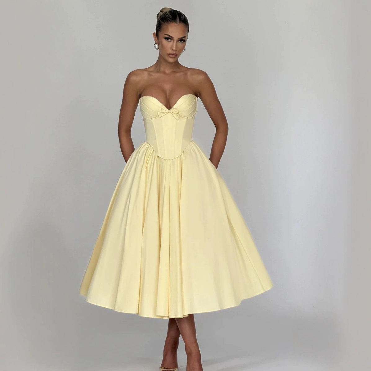 外贸 dress性感抹胸露背鱼骨束腰黑色连衣裙欧美长裙礼服DFKD1562