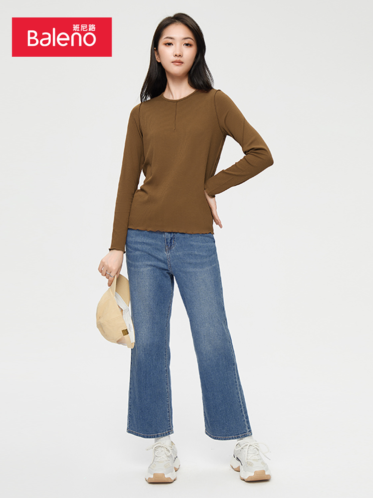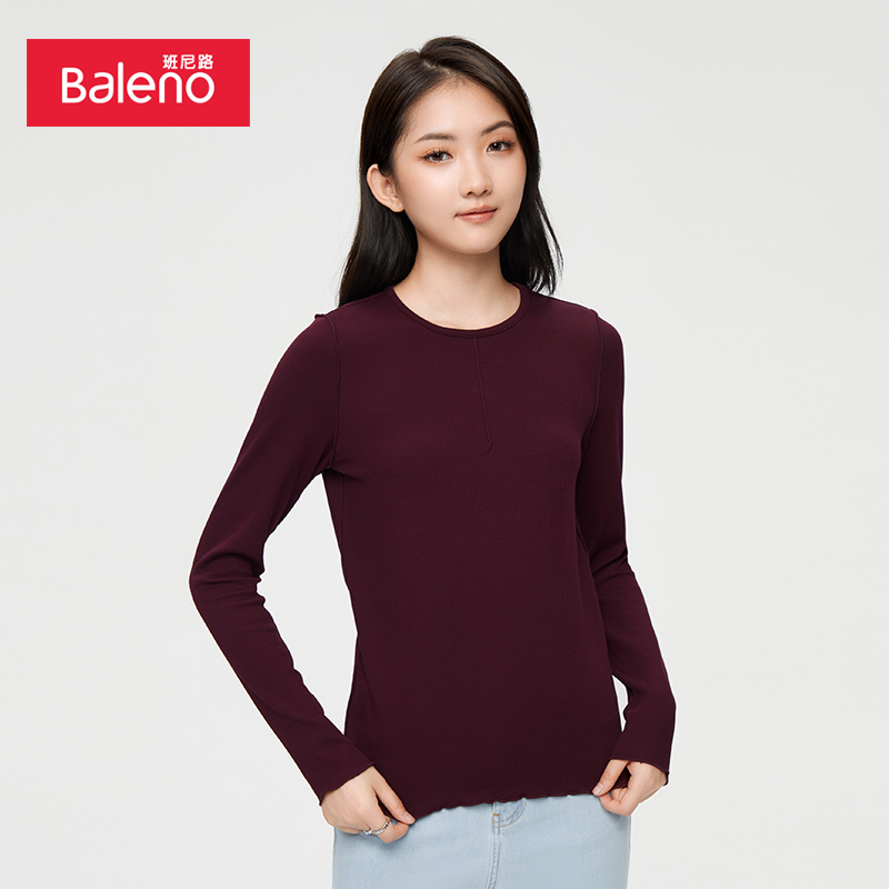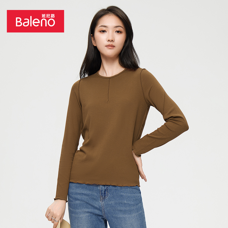 班尼路秋季新品女装时尚潮百搭流简约休闲舒适长袖打底衫T恤