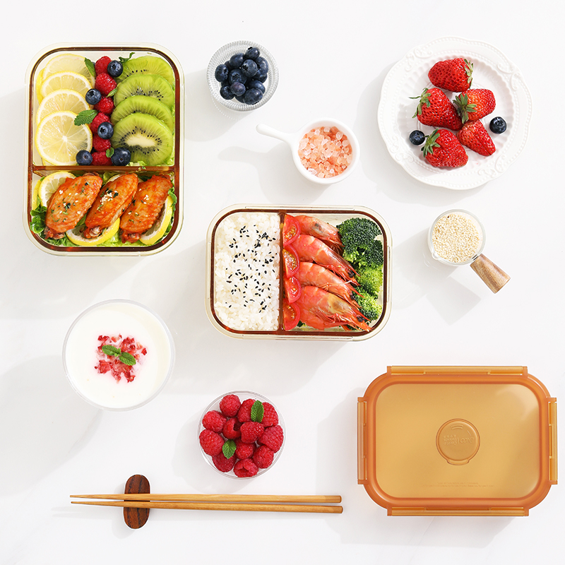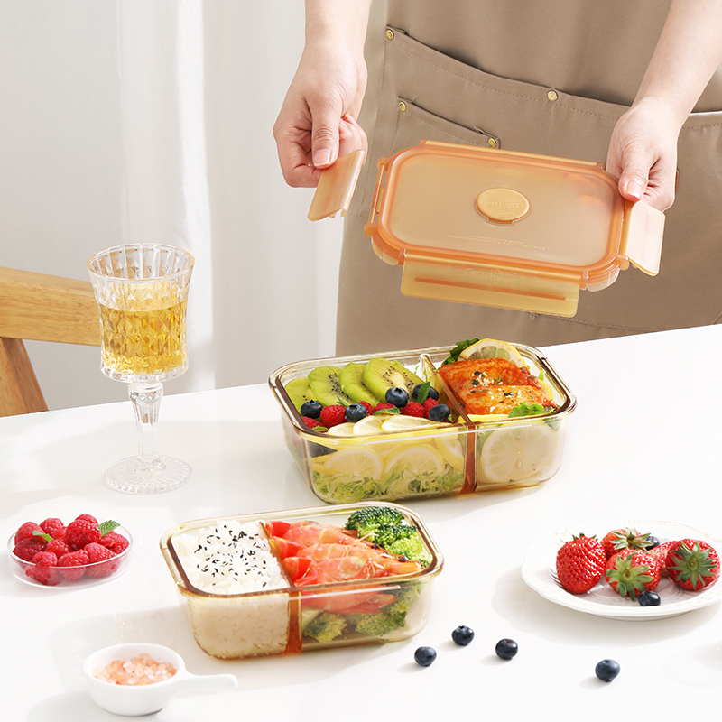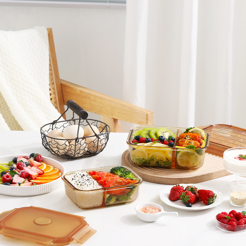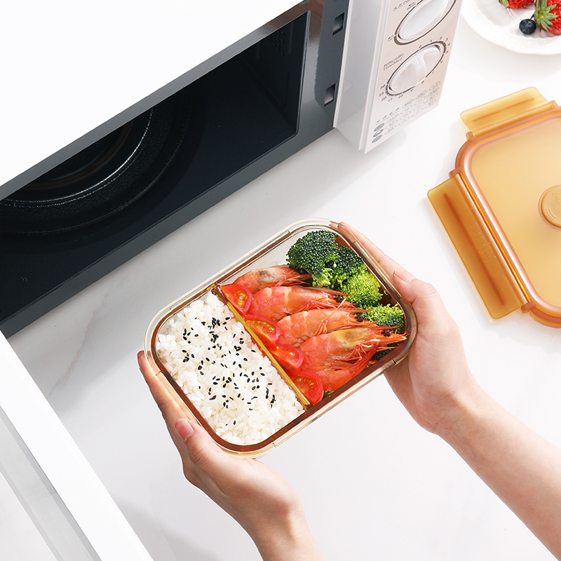 康宁琥珀色玻璃保鲜盒食品级耐高温可微波炉加热带饭上班族饭盒