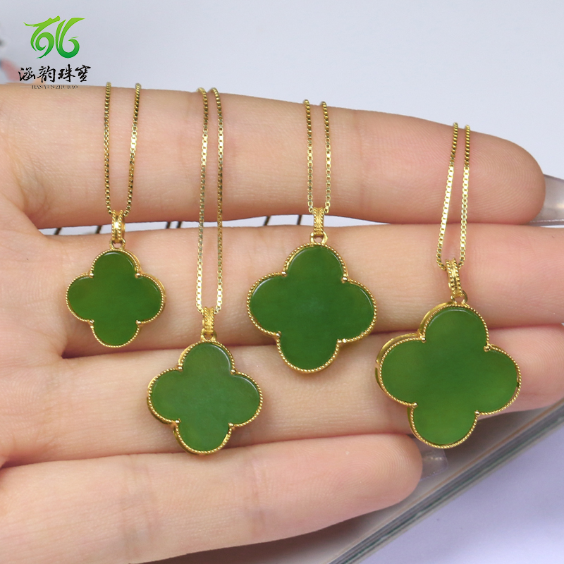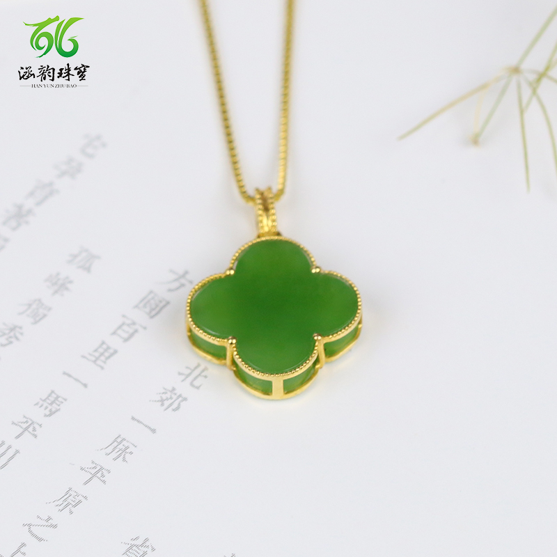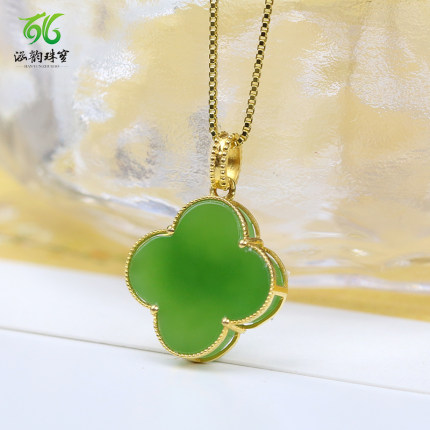 天然和田碧玉18k金四叶草项链高级感玉石吊坠礼物礼品生日礼物