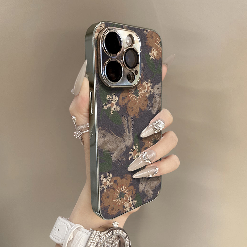 浙皇适用于苹果16e手机壳iPhone15新款14plus小羊皮13promax高级12电镀防摔11支架创意可爱7女8油画花朵兔子