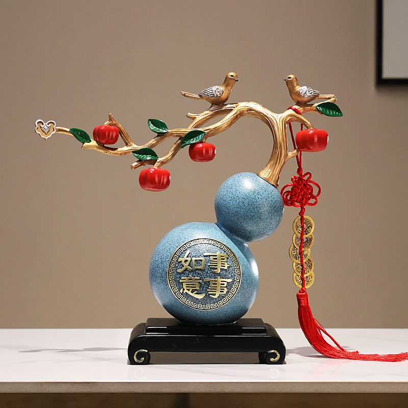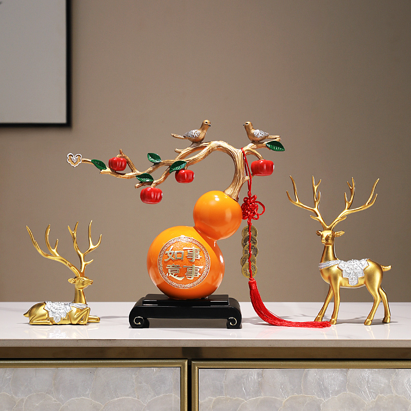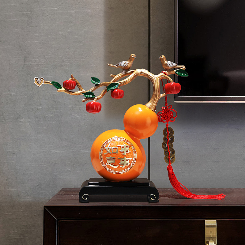 新中式柿柿如意葫芦摆件客厅电视柜装饰品桌面工艺品乔迁新居礼物