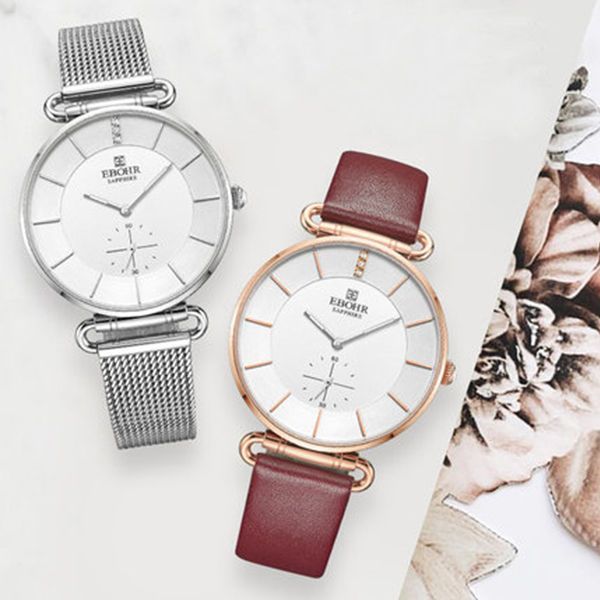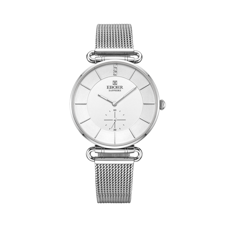 依波表(EBOHR)大师石英表女不锈钢编织表带超薄休闲防水女表1705