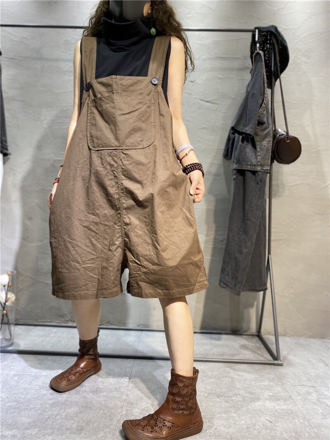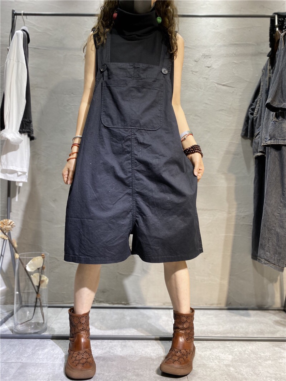 日系版大码宽松减龄背带裤女短裤韩版百搭时尚显瘦阔腿裤夏款