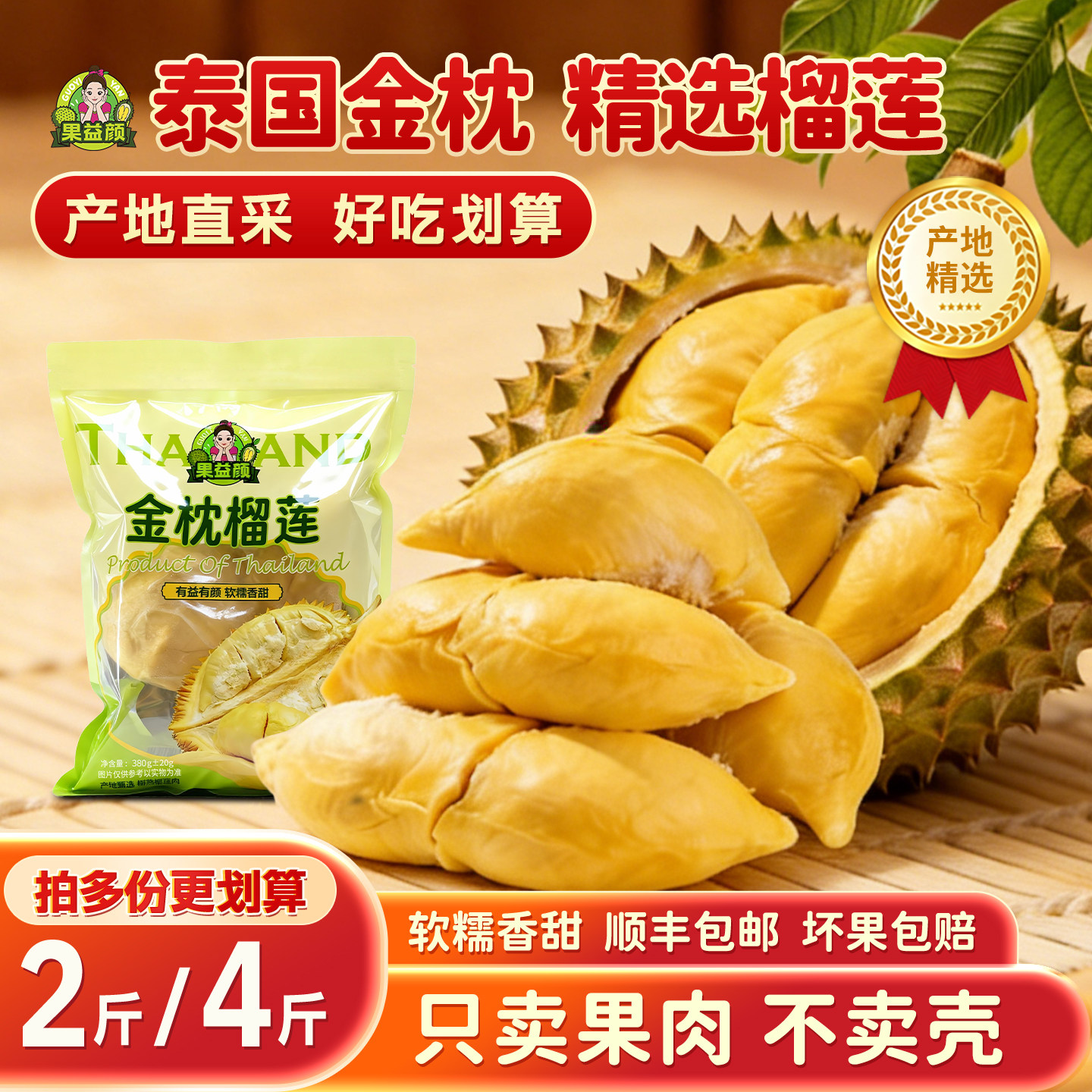 泰国金枕榴莲肉4斤冷冻肉A果益颜冷冻榴莲肉2斤380g新鲜顺丰包邮