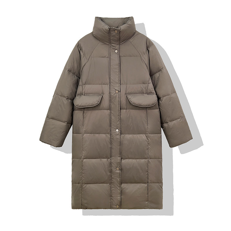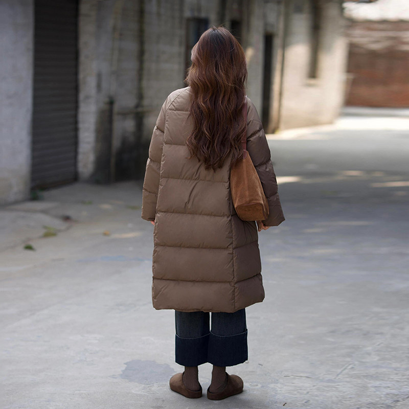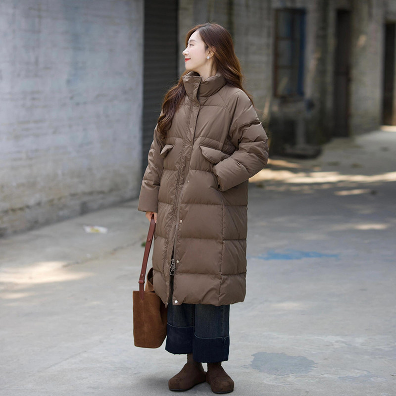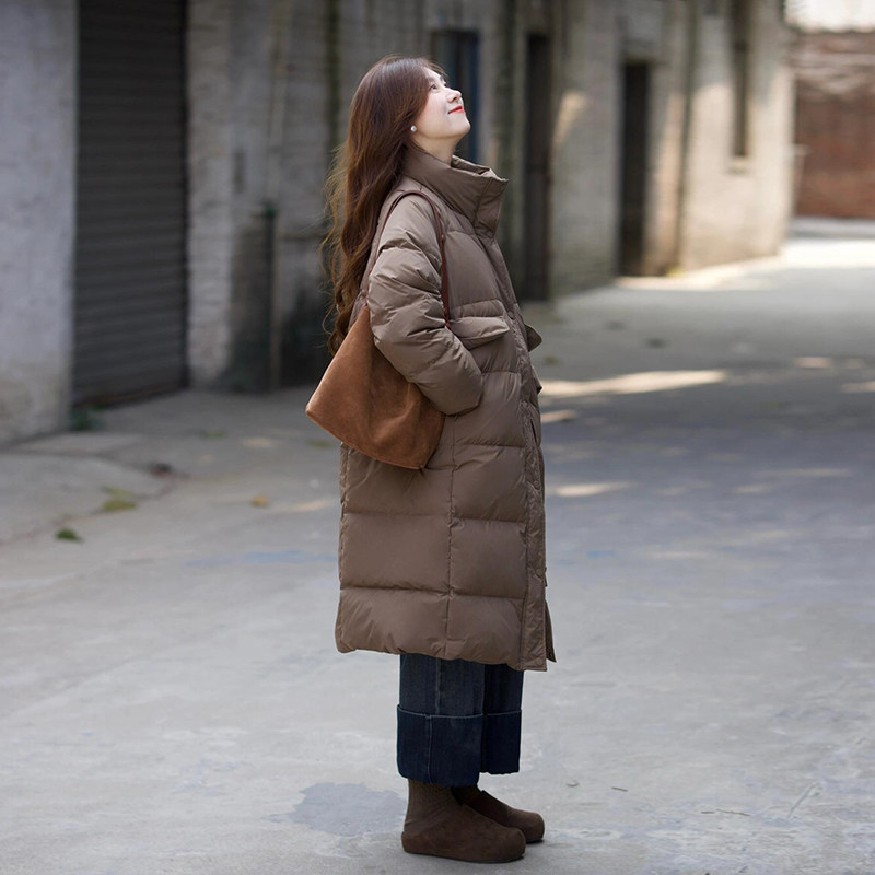 高级感90白鸭绒羽绒服女2025秋冬季新款设计小众立领法式中长外套