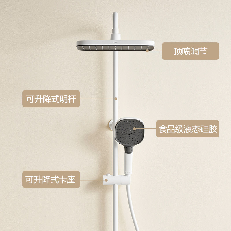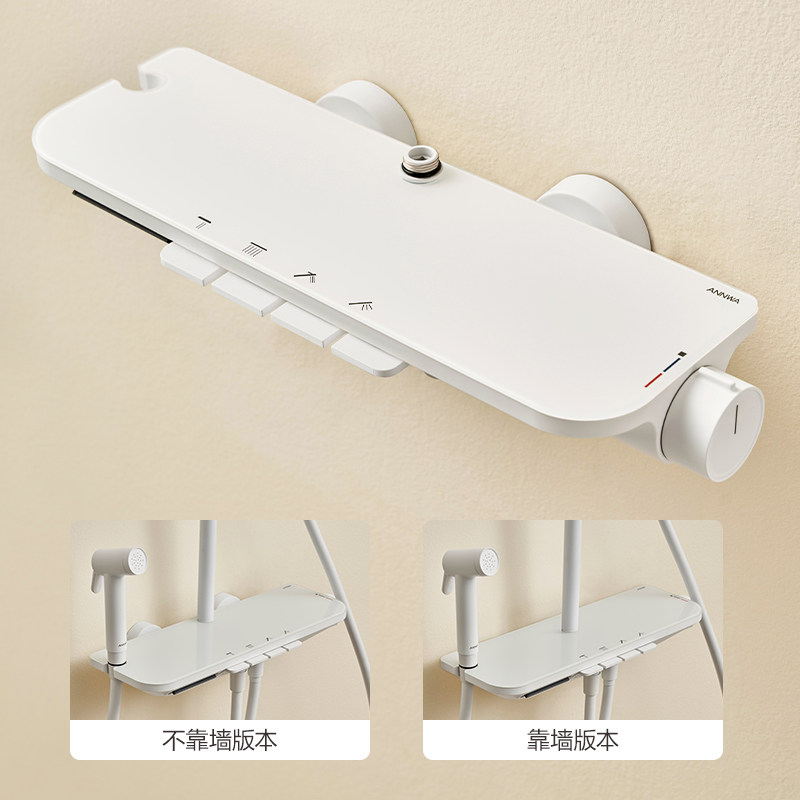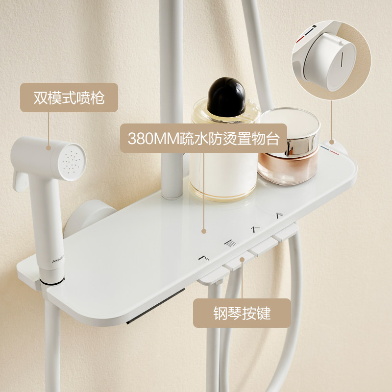 钢琴按键大置物台白色淋浴花洒