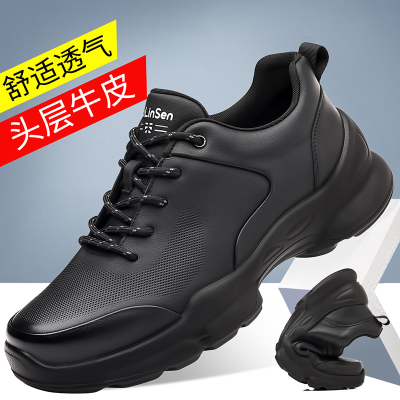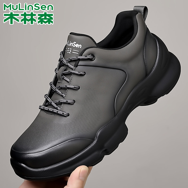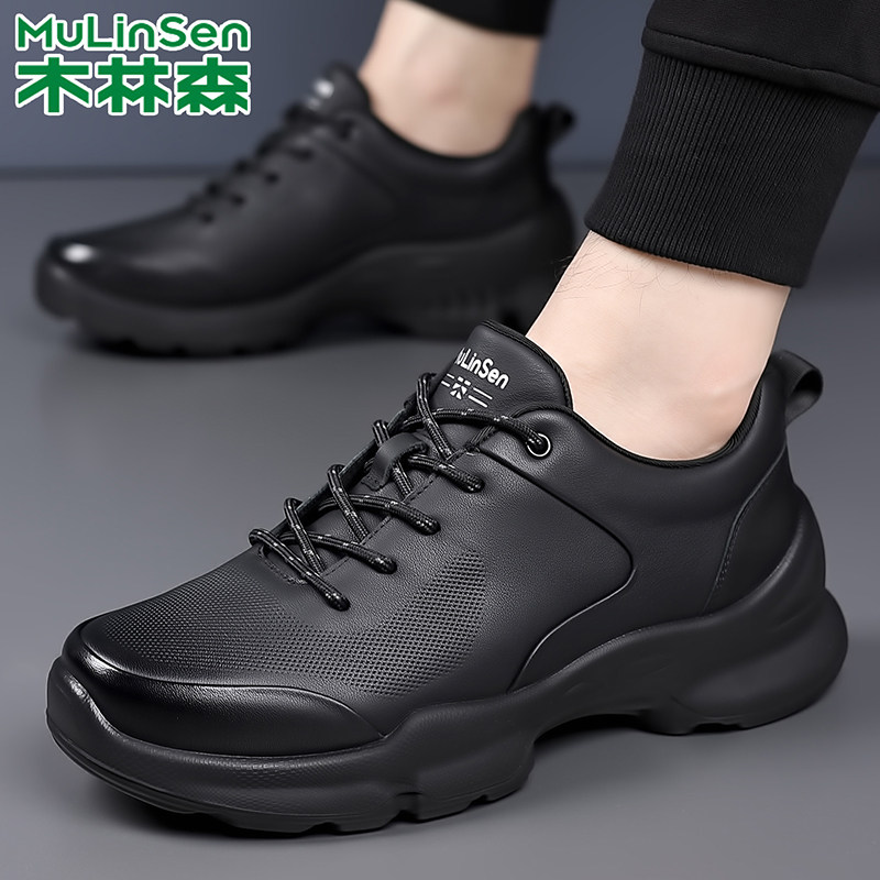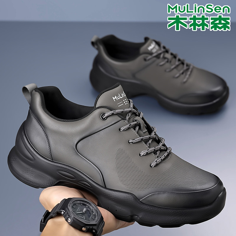 木林森男鞋秋季新款休闲皮鞋全牛皮百搭旅游鞋男士防水软底运动鞋