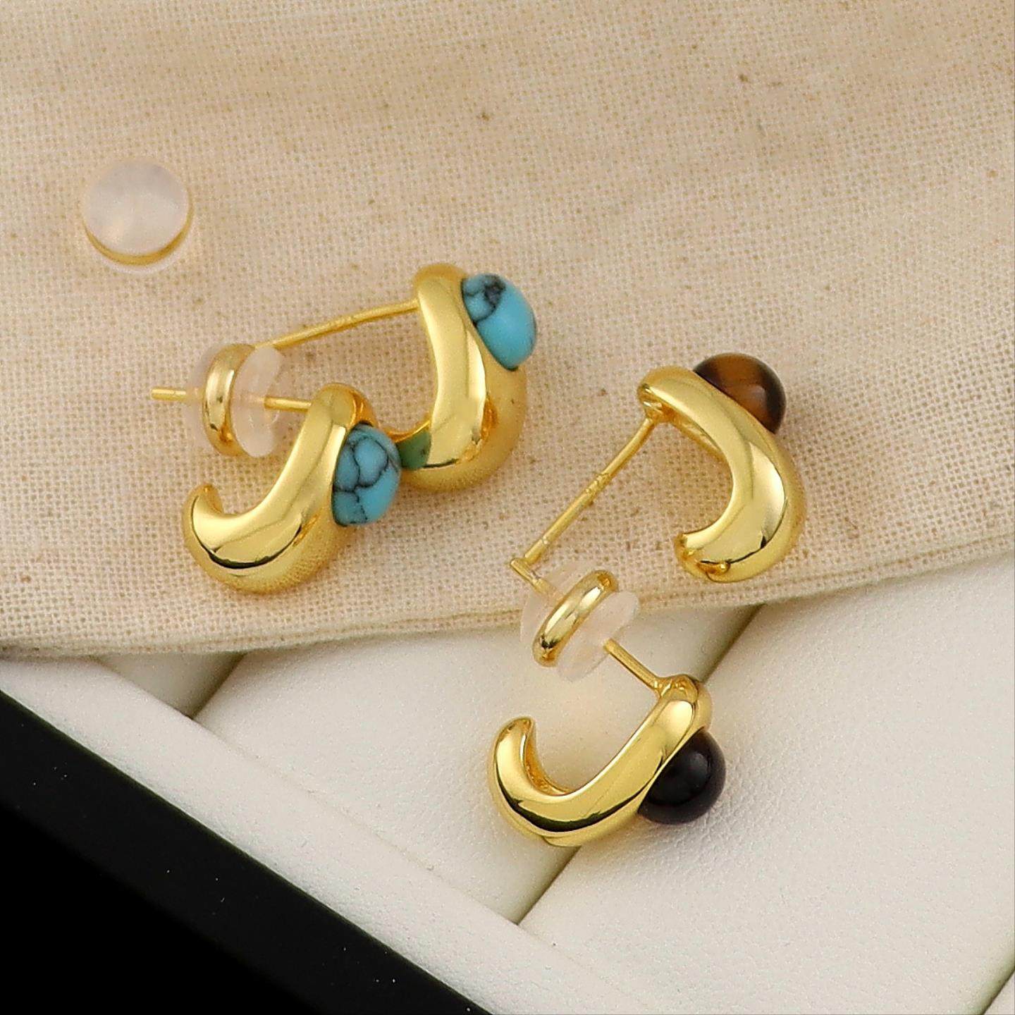 绿松石色天然石耳环2025新款