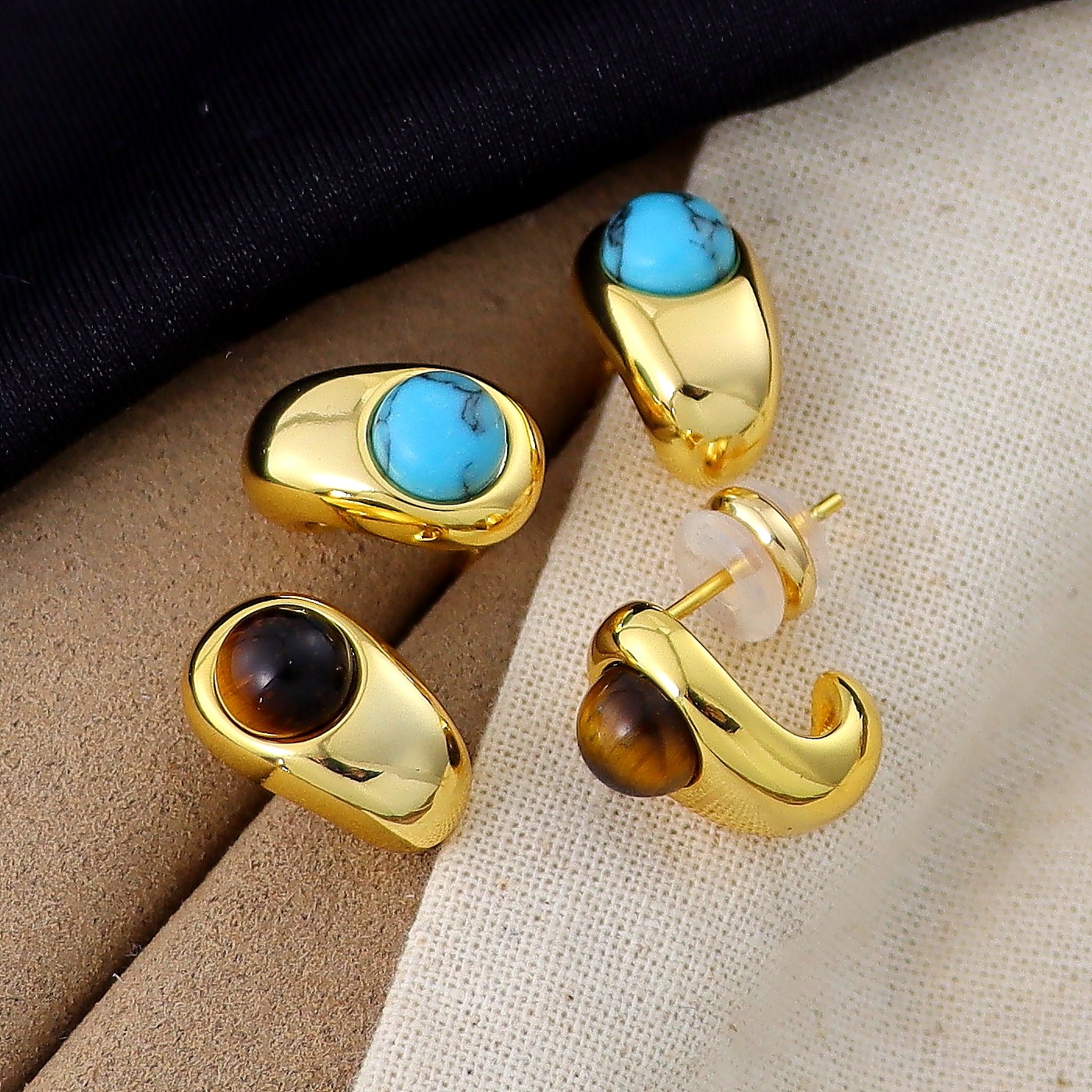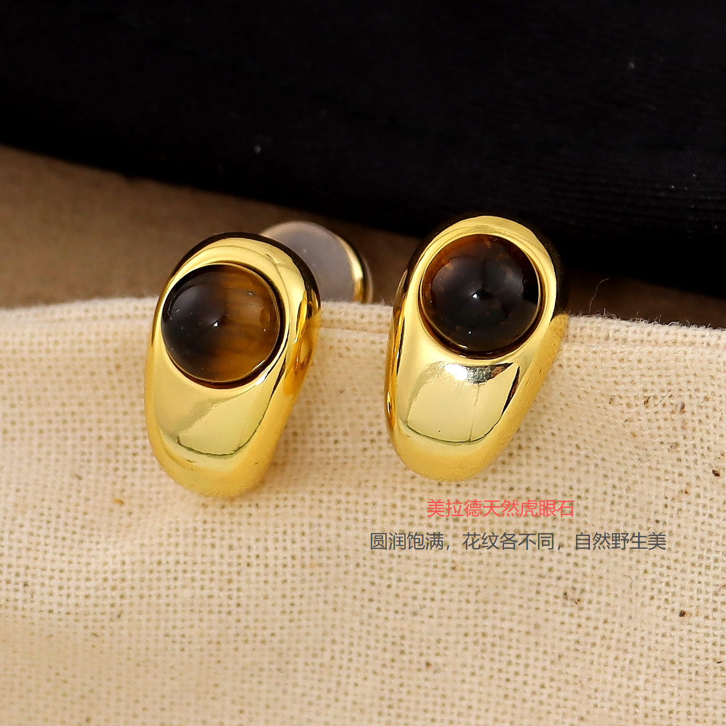 绿松石色天然石耳环2025新款复古轻奢美拉德虎眼石精致高端耳钉女
