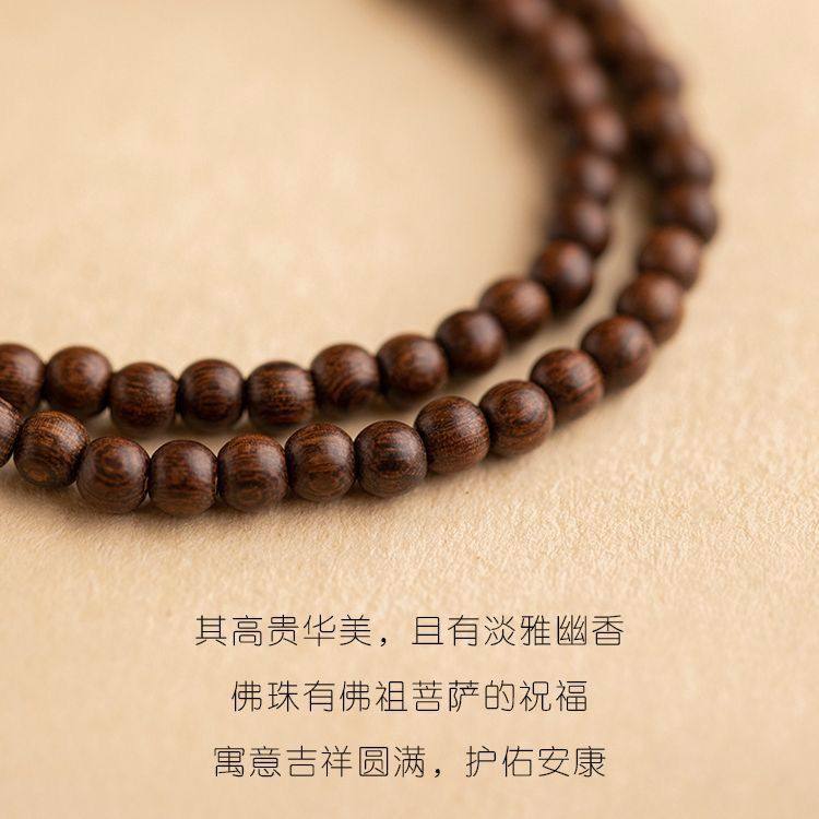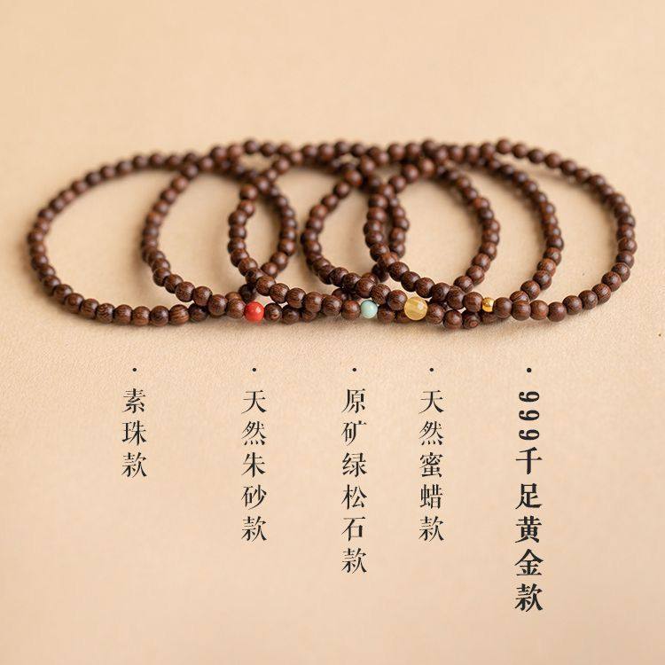 小叶紫檀手链女款高油高密老料顺纹单圈佛珠手链朱砂檀香手串搭配
