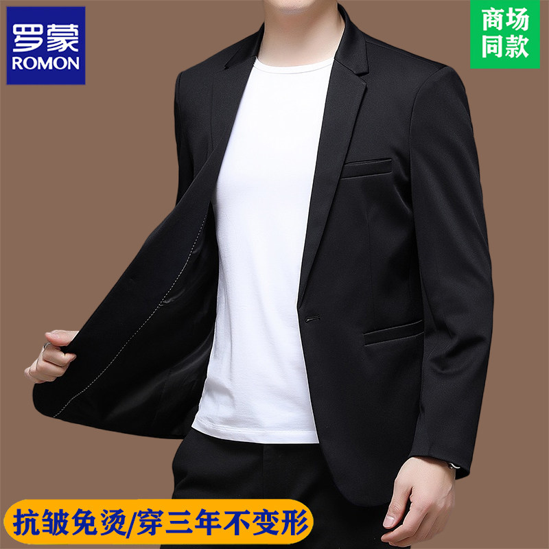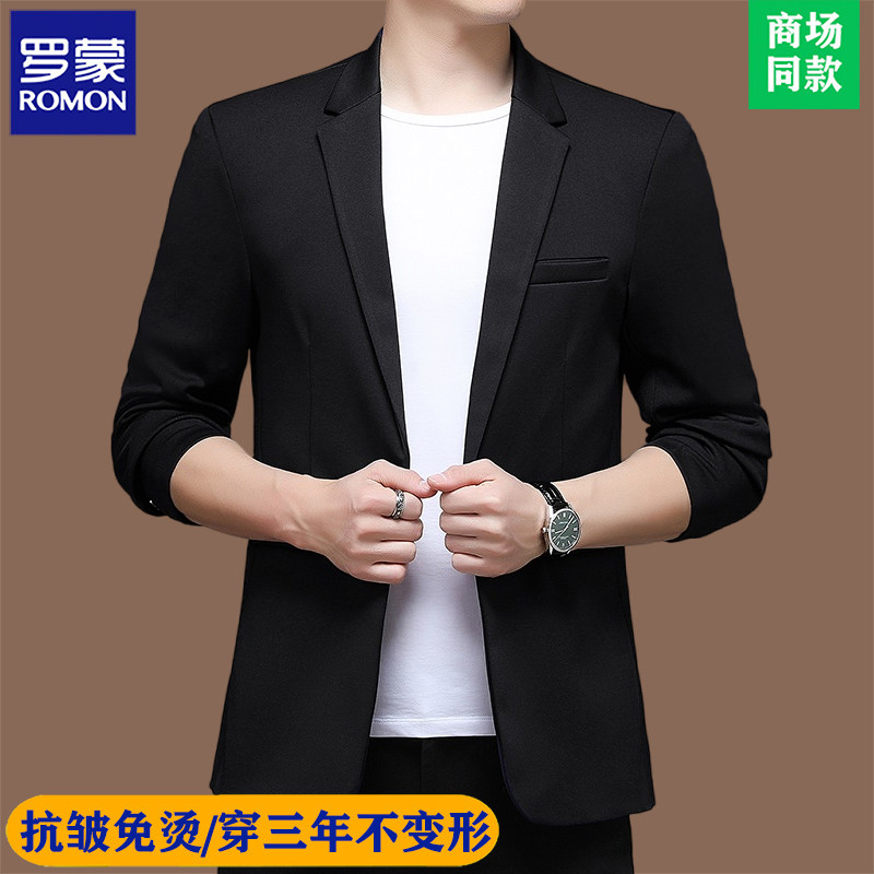 罗蒙高端品牌痞帅小西装男士春秋商务韩版潮休闲修身黑色西服外套